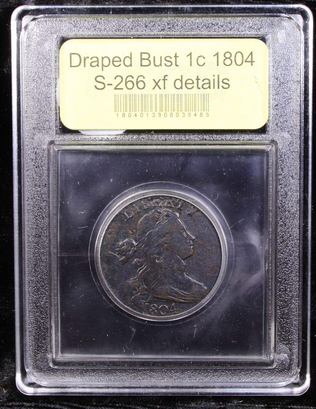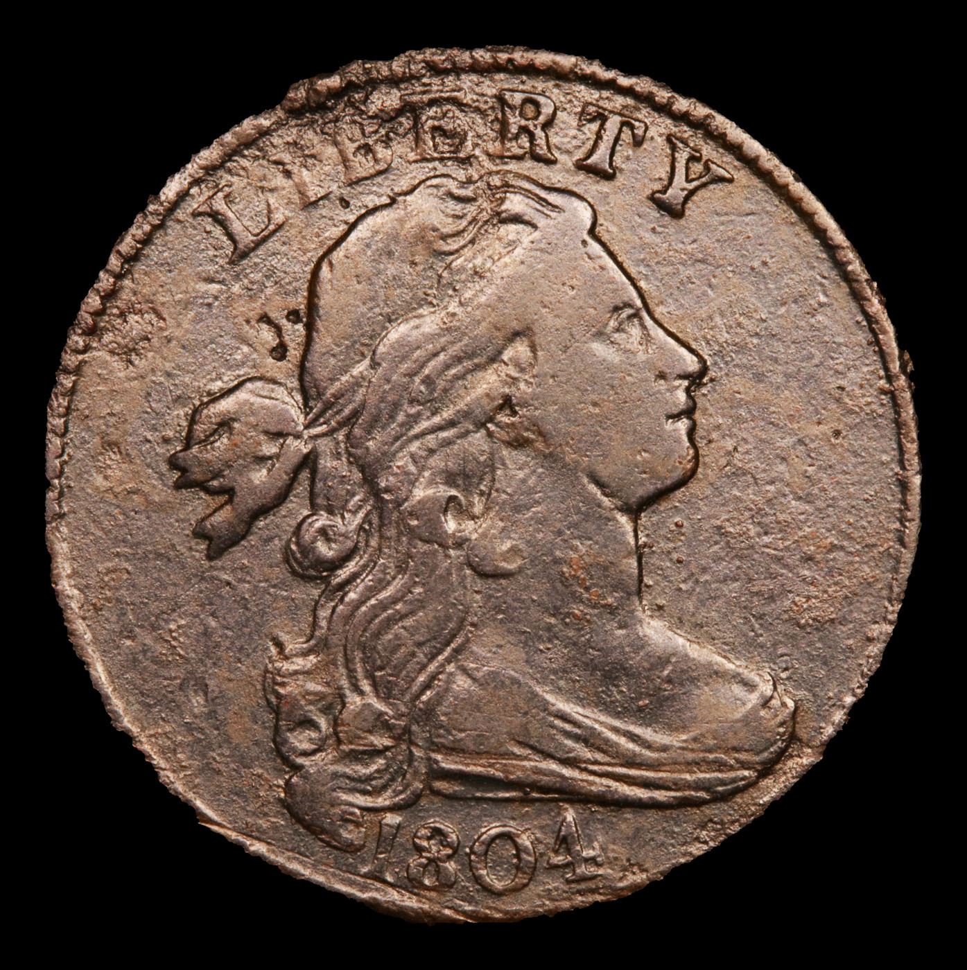 ***Auction Highlight*** 1804 S-266 R2 Draped Bust Large Cent 1c Graded xf details By USCG. The 1804 Draped Bust large cent has historically shared a special aura with its lofty predecessor, the 1799. These two dates have always been the keys to the early copper series. Only one die variety is known for the 1804. Breen Die State I. We see no evidence of die cracks on either side of this important cent. The next die state has obverse and reverse cracks, but no rim breaks. State III has the obverse rim break, and State IV has obverse and reverse rim breaks. Bill Noyes records just five examples of 29 in the earliest die state, and none finer than VF30 based on his grading. Just 10 coins have ever graded above xf in all Die States.. A Corey's Pick, Bid to Win, Don't let it get Away, you might not find its equal Coin. I give this coin my highest recommendation