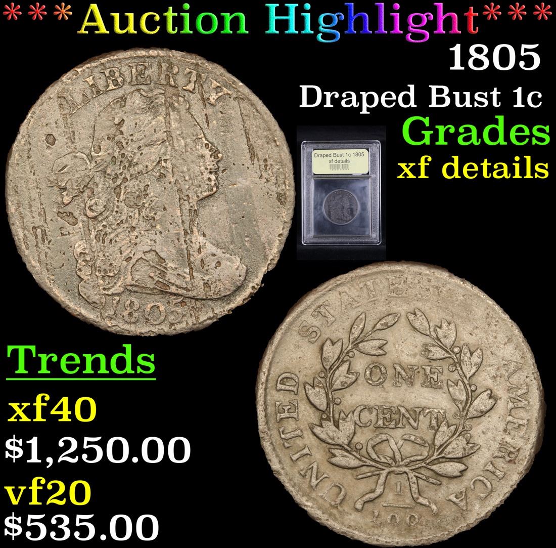 ***Auction Highlight*** 1805 . . Draped Bust Large Cent 1c Graded xf details By USCG.