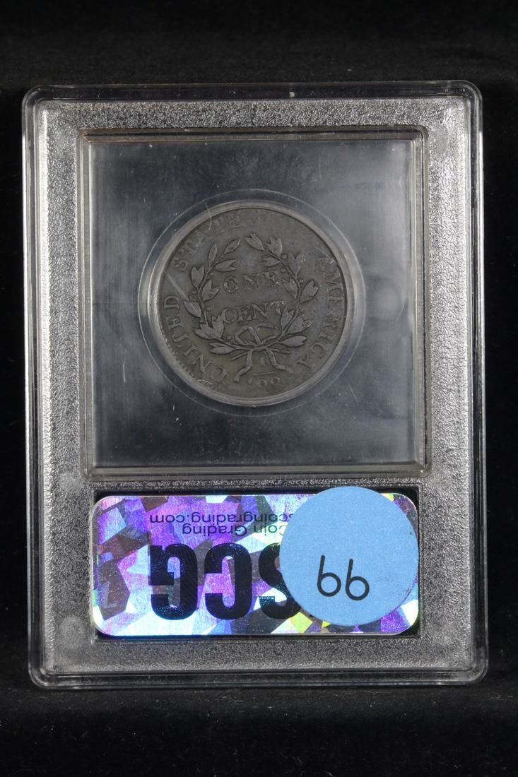 We DO NOT guarantee coin grades on any of our lots. Please study photos carefully and Video during the auction as well as asking questions before bidding. We may be reached at 856-685-9848 prior to the auction M-F 9am-5PM EST.