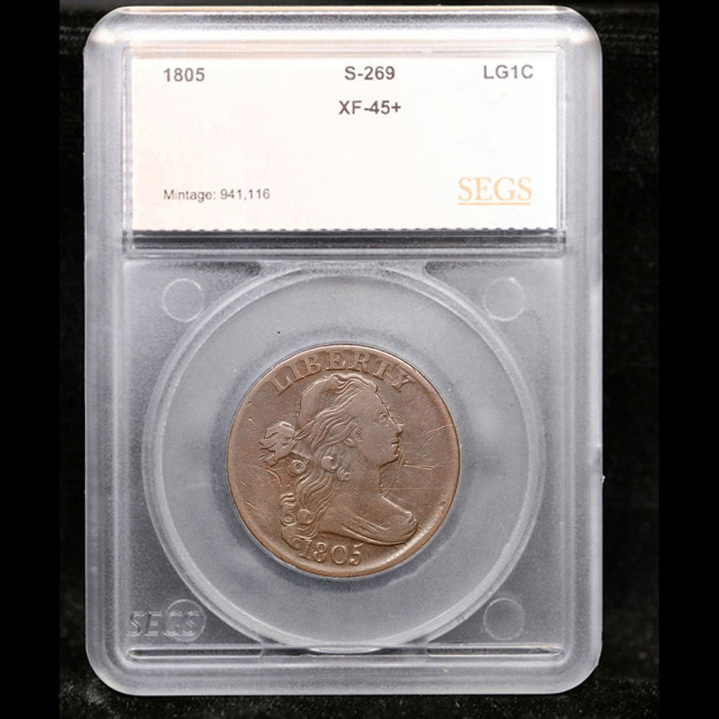 ***Auction Highlight*** 1805 S-269 Draped Bust Large Cent 1c Graded xf45+ By SEGS. A Corey's Pick, Bid to Win Coin