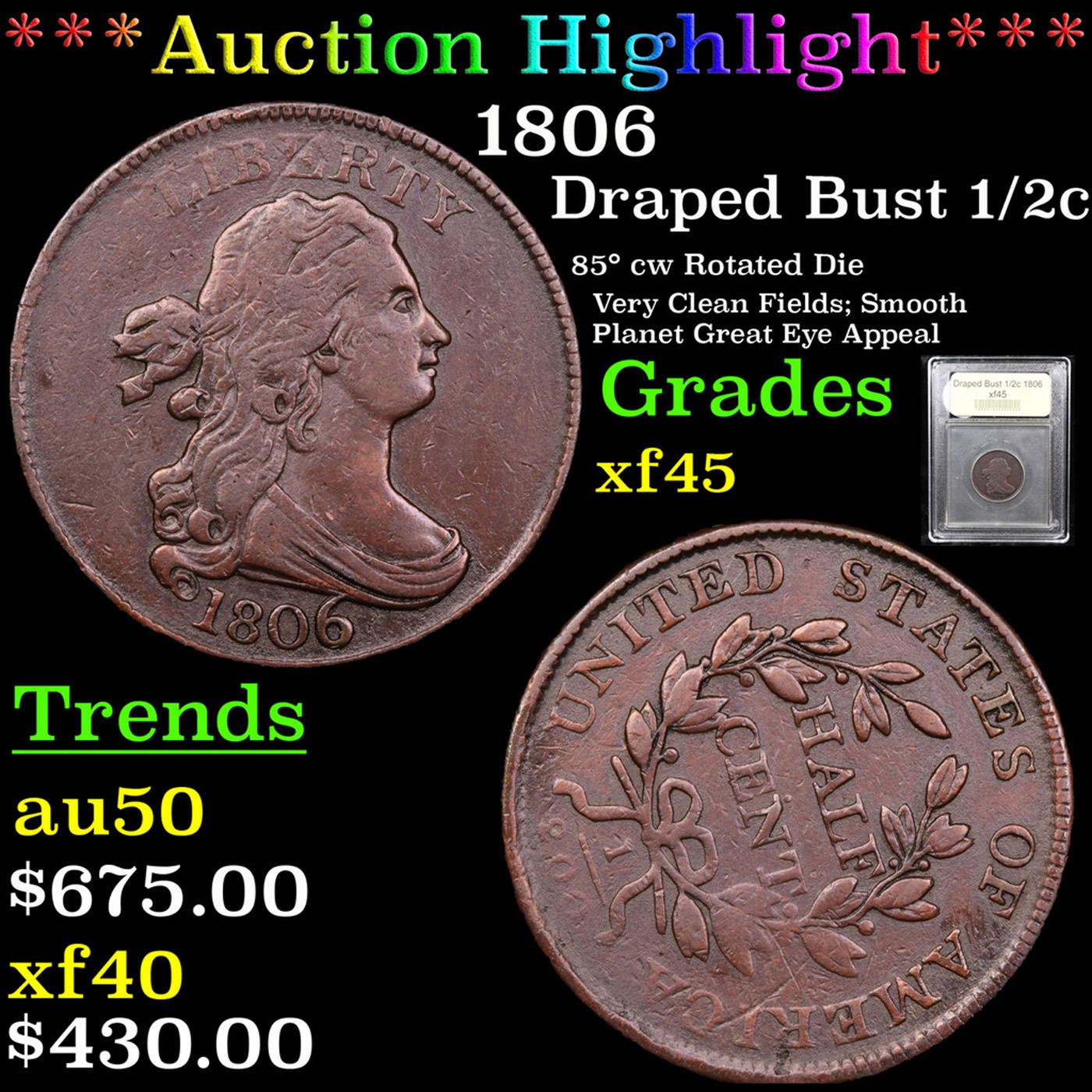 ***Auction Highlight*** 1806 Draped Bust Half Cent 1/2c Graded xf+ By USCG.