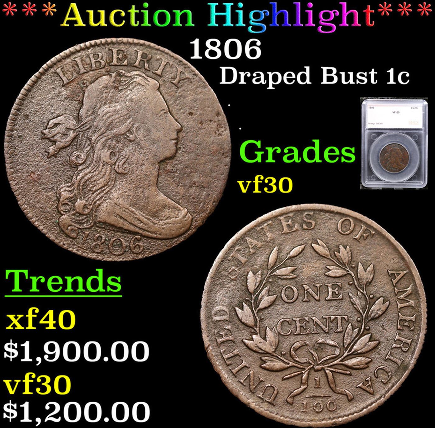 ***Auction Highlight*** 1806 Draped Bust Large Cent 1c Graded vf30 By SEGS. A Corey's Pick, Bid to Win, Don't let it get Away Coin
