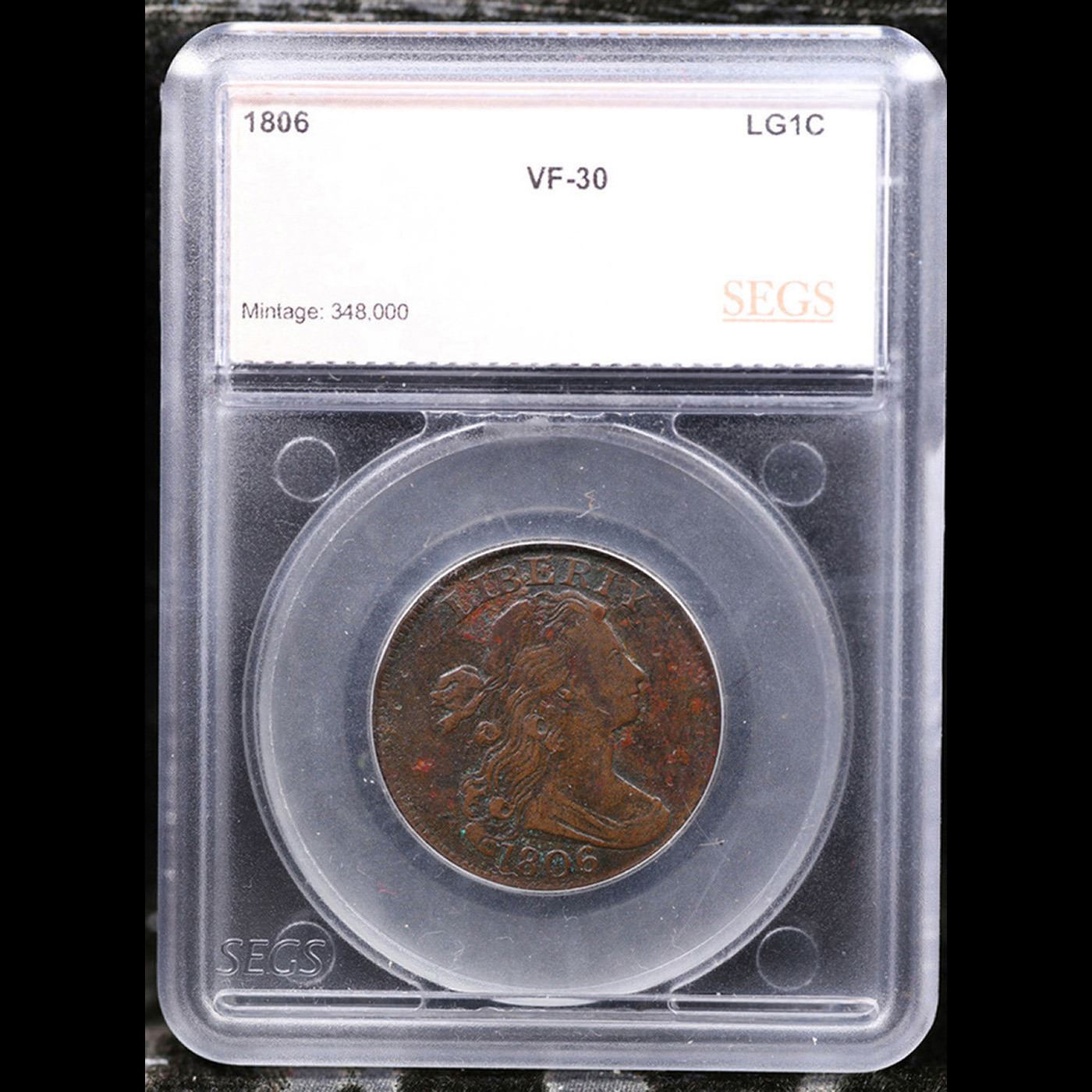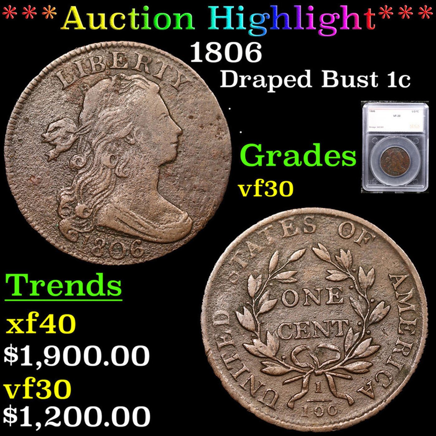 ***Auction Highlight*** 1806 Draped Bust Large Cent 1c Graded vf30 By SEGS. A Corey's Pick, Bid to Win, Don't let it get Away Coin