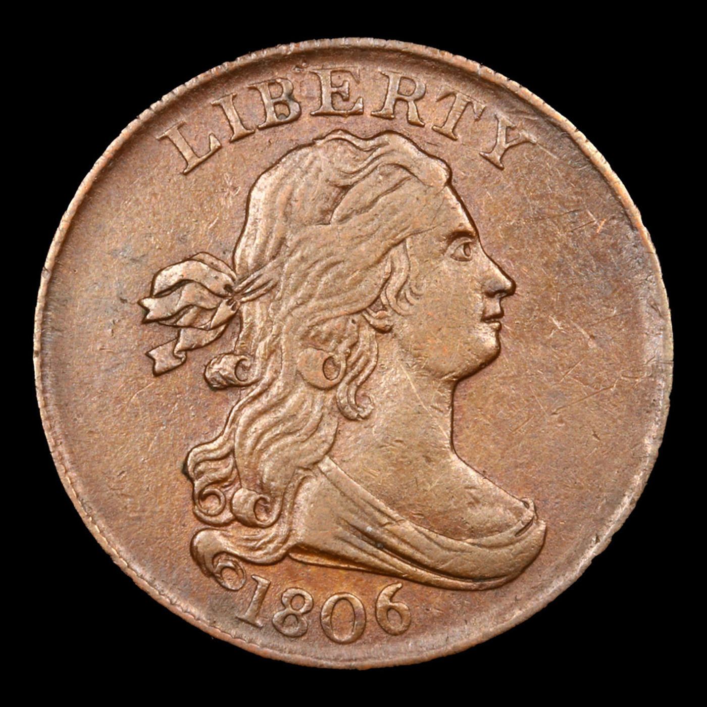 ***Auction Highlight*** 1806 Small 6 No Stems C-1 Draped Bust Half Cent 1/2c Graded au53 BY SEGS.
