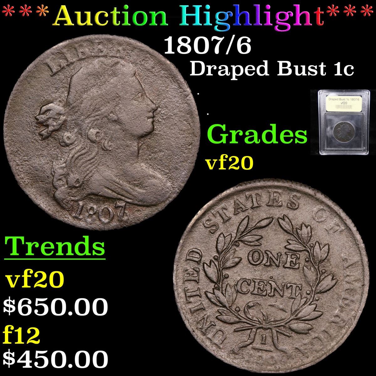***Auction Highlight*** 1807/6 . . Draped Bust Large Cent 1c Graded vf, very fine By USCG.