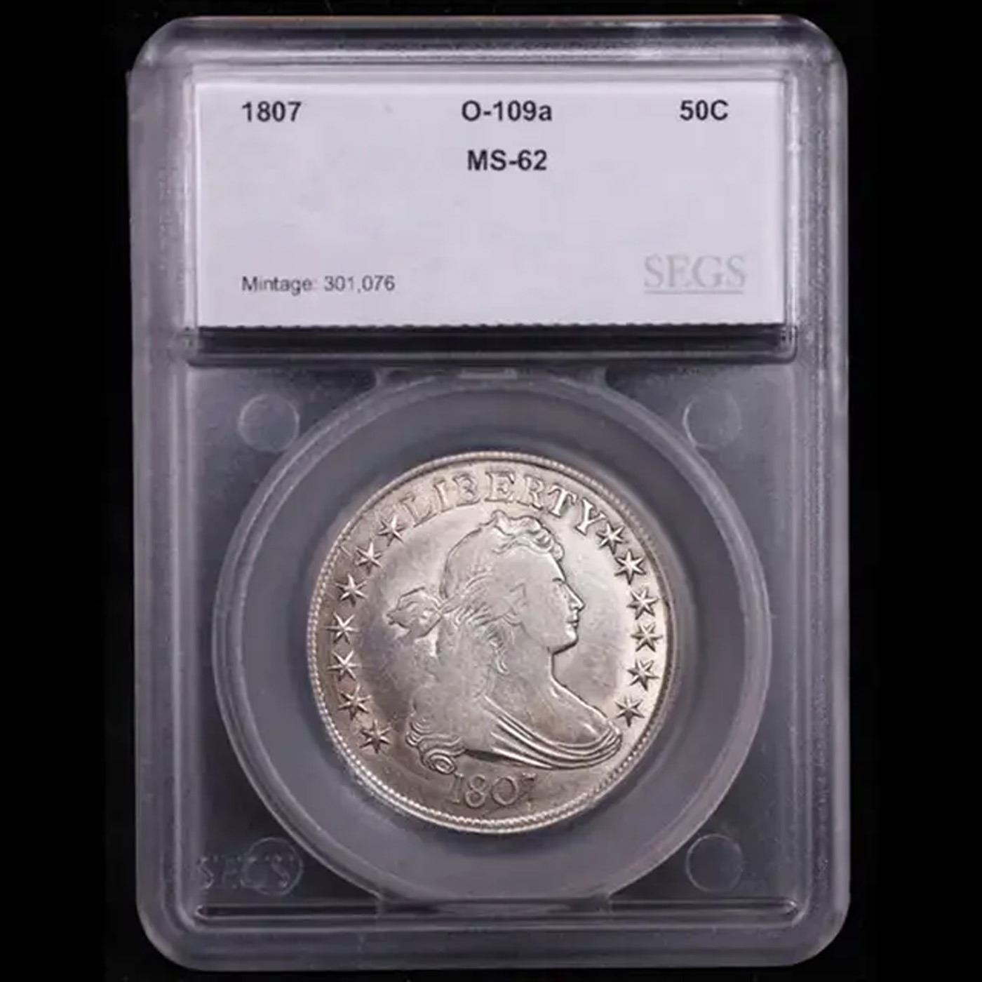 ***Auction Highlight*** 1807 O-109A R-3 Draped Bust Half Dollar 50c Graded ms62 By SEGS. A Key Date's Pick, Bid to Win, Don't let it get Away Coin