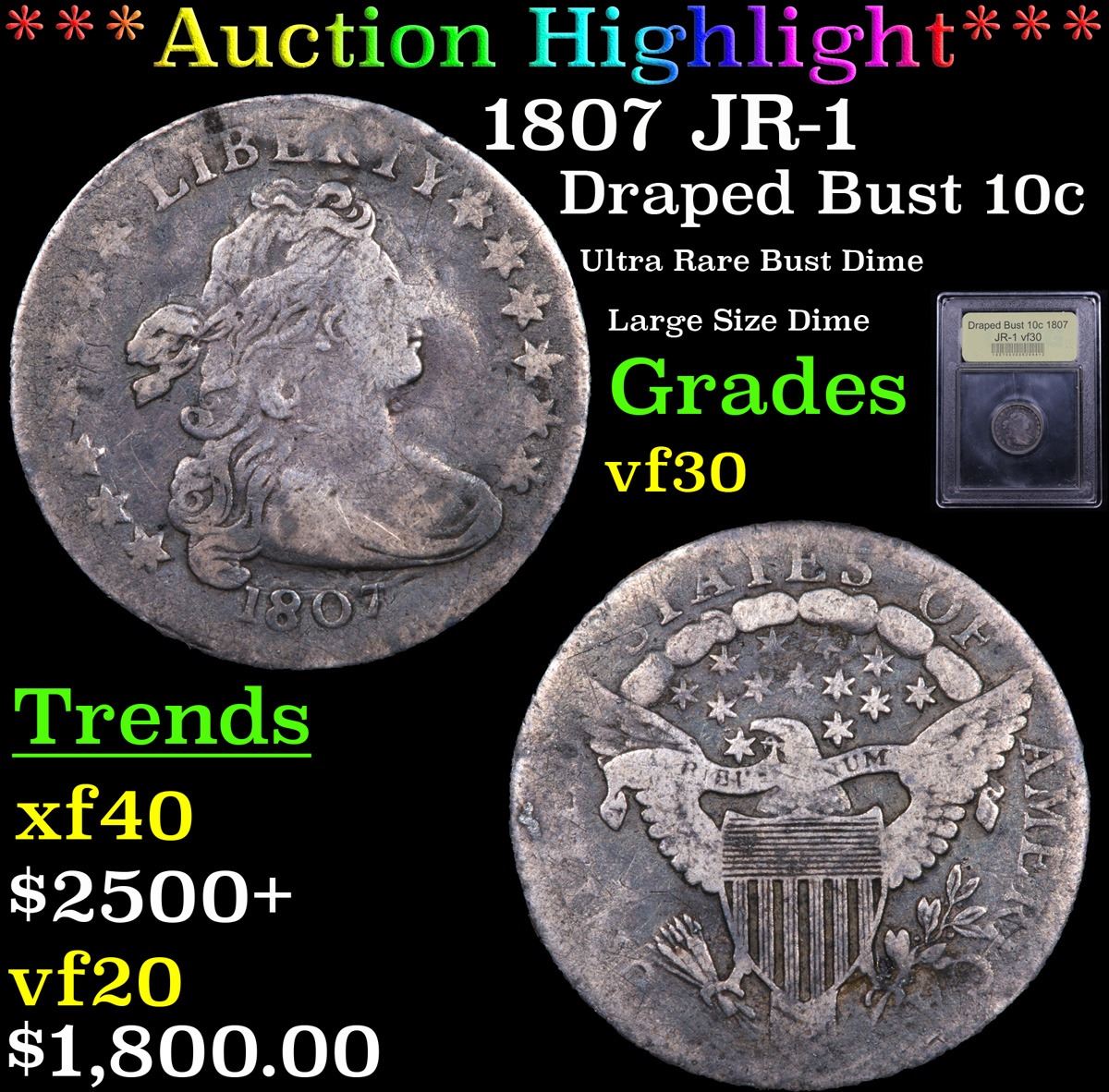 ***Auction Highlight*** 1807 JR-1 Draped Bust Dime 10c Graded vf++ By USCG.
