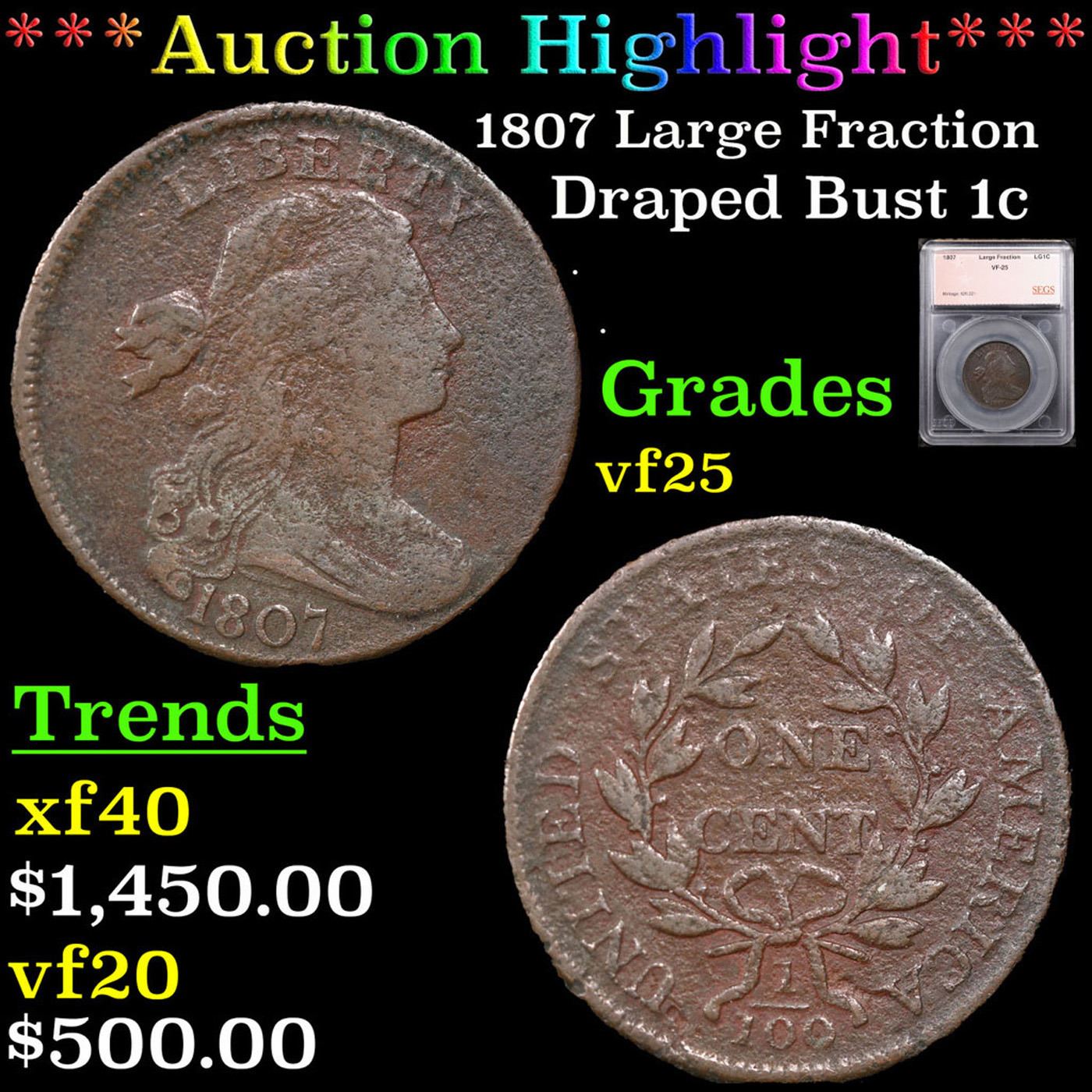***Auction Highlight*** 1807 Large Fraction Draped Bust Large Cent 1c Graded vf25 By SEGS (fc)