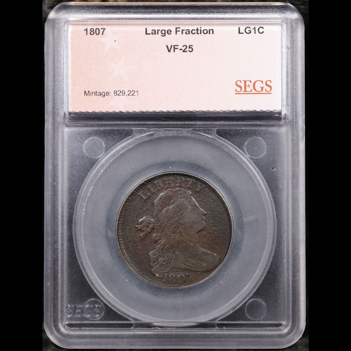 ***Auction Highlight*** 1807 Large Fraction Draped Bust Large Cent 1c Graded vf25 By SEGS. A Corey's Pick, Bid to Win Coin