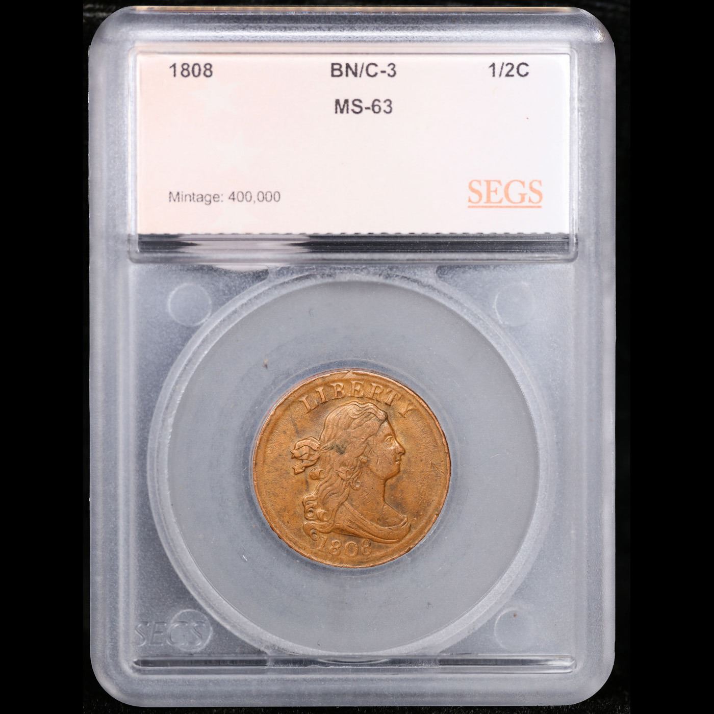 ***Auction Highlight*** 1808 C-3 Draped Bust Half Cent 1/2c Grades Select Unc BN By SEGS. A Corey's Pick, Bid to Win, Don't let it get Away, you might not find its equal Coin