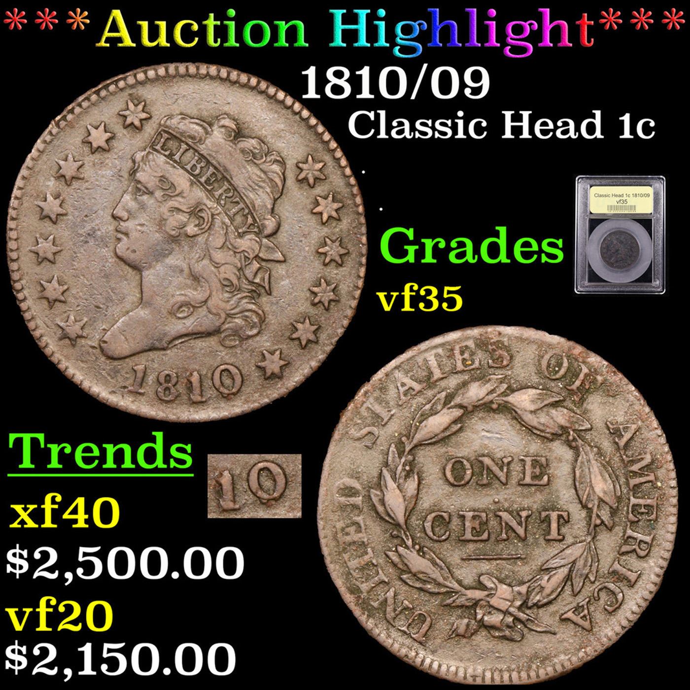 ***Auction Highlight*** 1810/09 Classic Head Large Cent 1c Graded vf++ BY USCG.