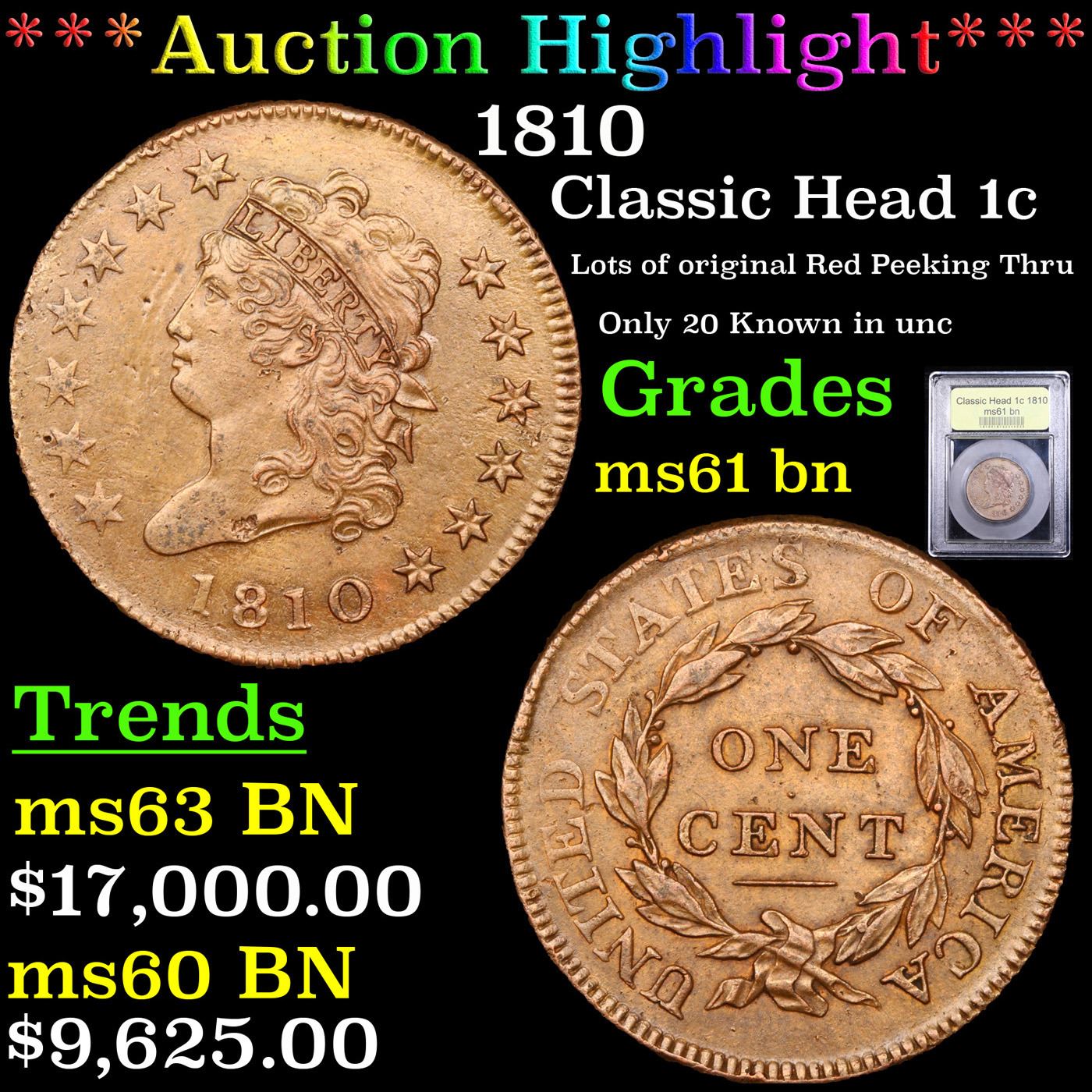 ***Auction Highlight*** 1810 Classic Head Large Cent 1c Graded Unc+ BN By USCG. A Corey's Pick, Bid to Win, Don't let it get Away Coin