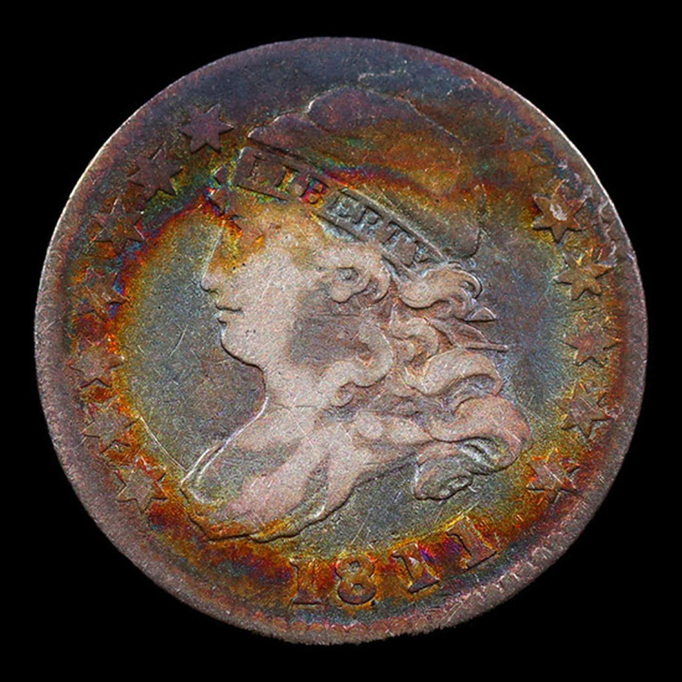 ***Auction Highlight*** 1811/09 JR-1 Capped Bust Dime Rainbow Toned 10c Graded vf25 By SEGS (fc)