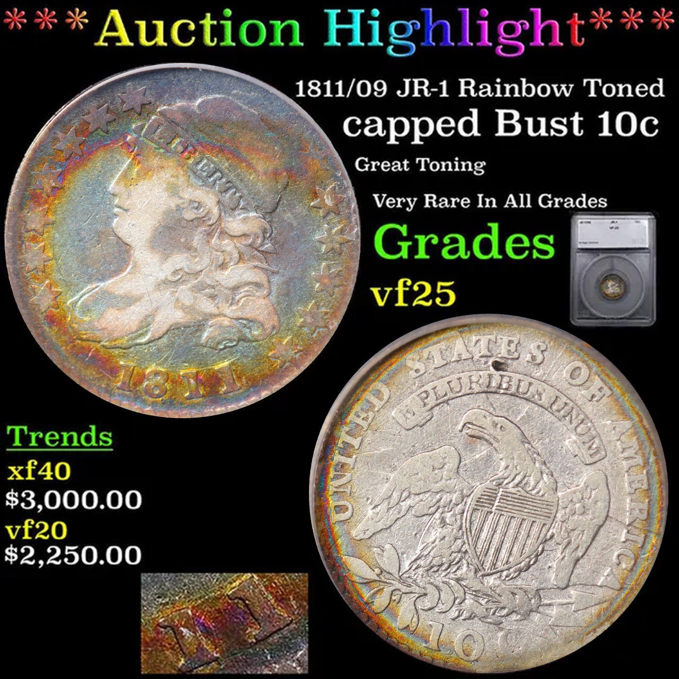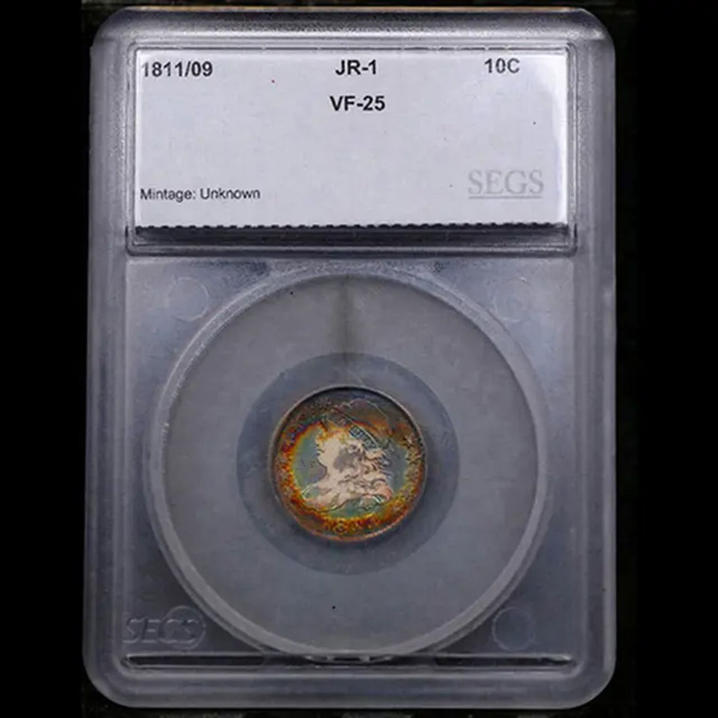***Auction Highlight*** 1811/09 JR-1 Capped Bust Dime Rainbow Toned 10c Graded vf25 By SEGS (fc)