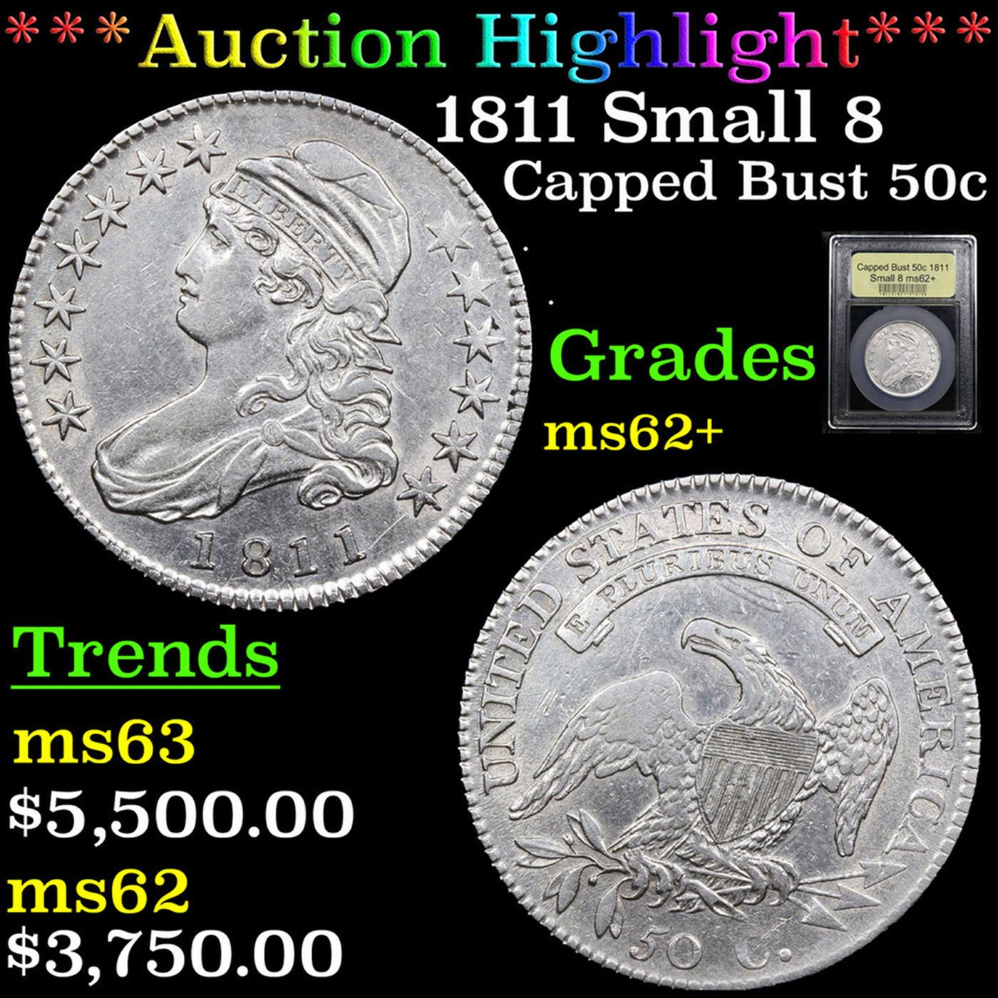 ***Auction Highlight*** 1811 Capped Bust Half Dollar Small 8 50c Graded Select Unc BY USCG (fc)