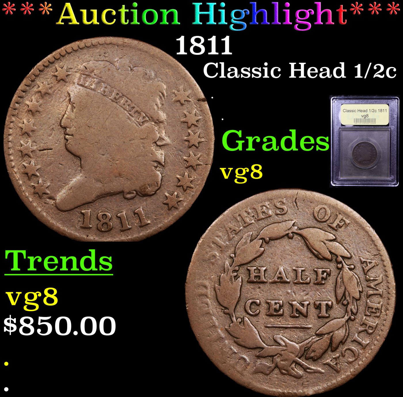 ***Auction Highlight*** 1811 Classic Head half cent 1/2c Graded vg, very good By USCG.         A Corey's Pick, Bid to Win Coin
