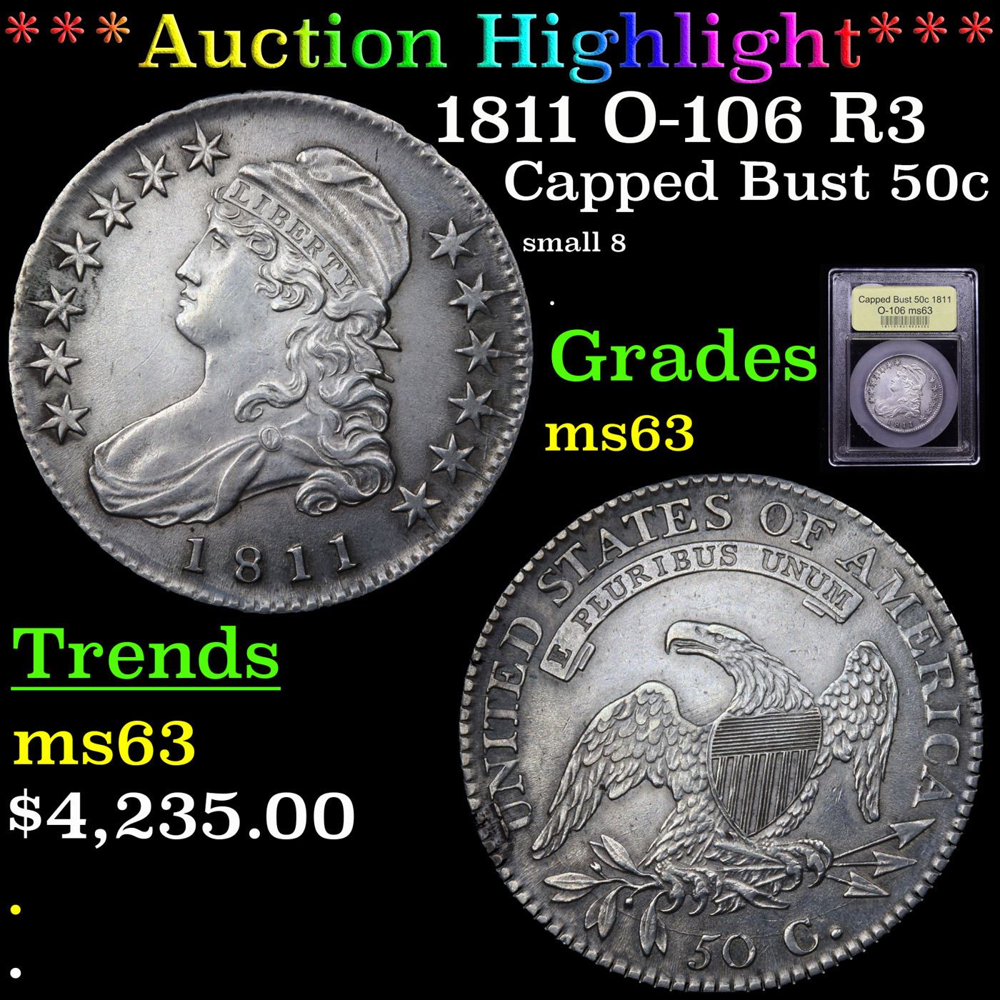 ***Auction Highlight*** 1811 O-106 R3 Capped Bust Half Dollar 50c Graded Select Unc By USCG.