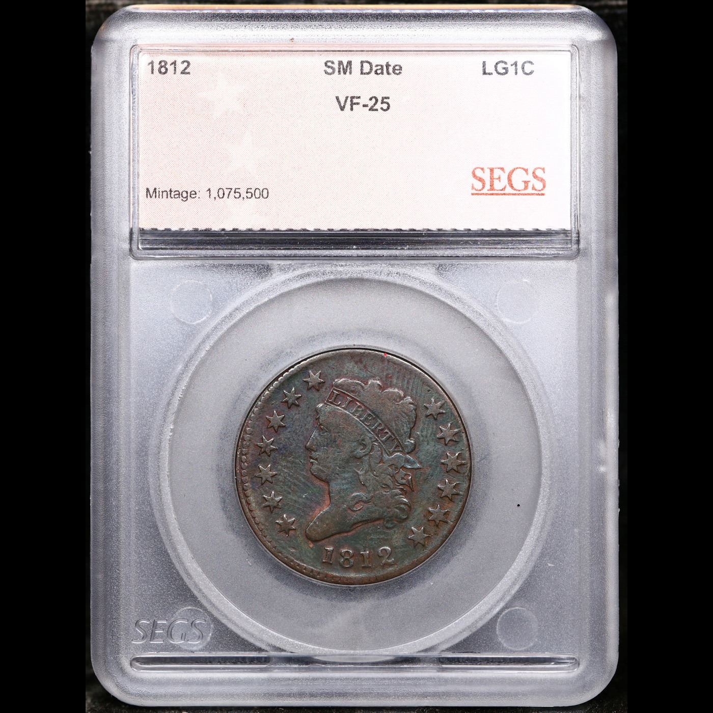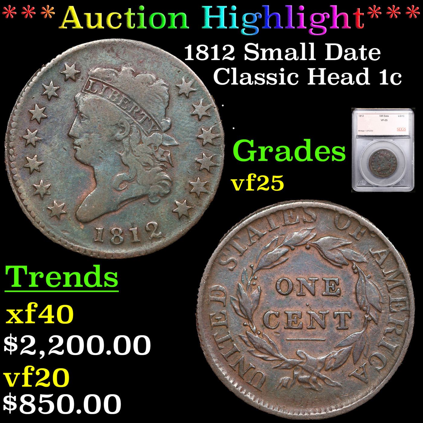 ***Auction Highlight*** 1812 Small Date Classic Head Large Cent 1c Graded vf25 By SEGS. A Corey's Pick, Bid to Win Coin