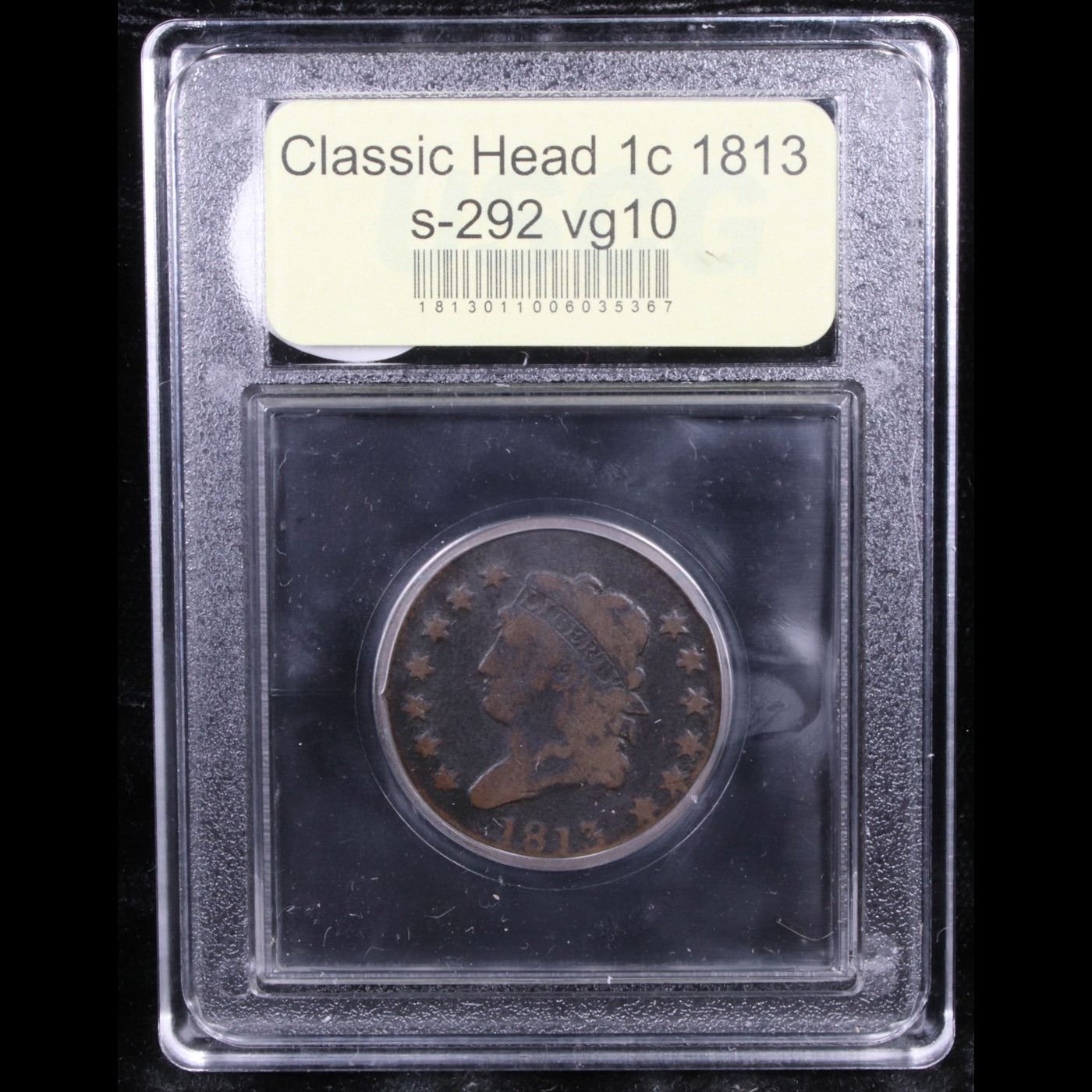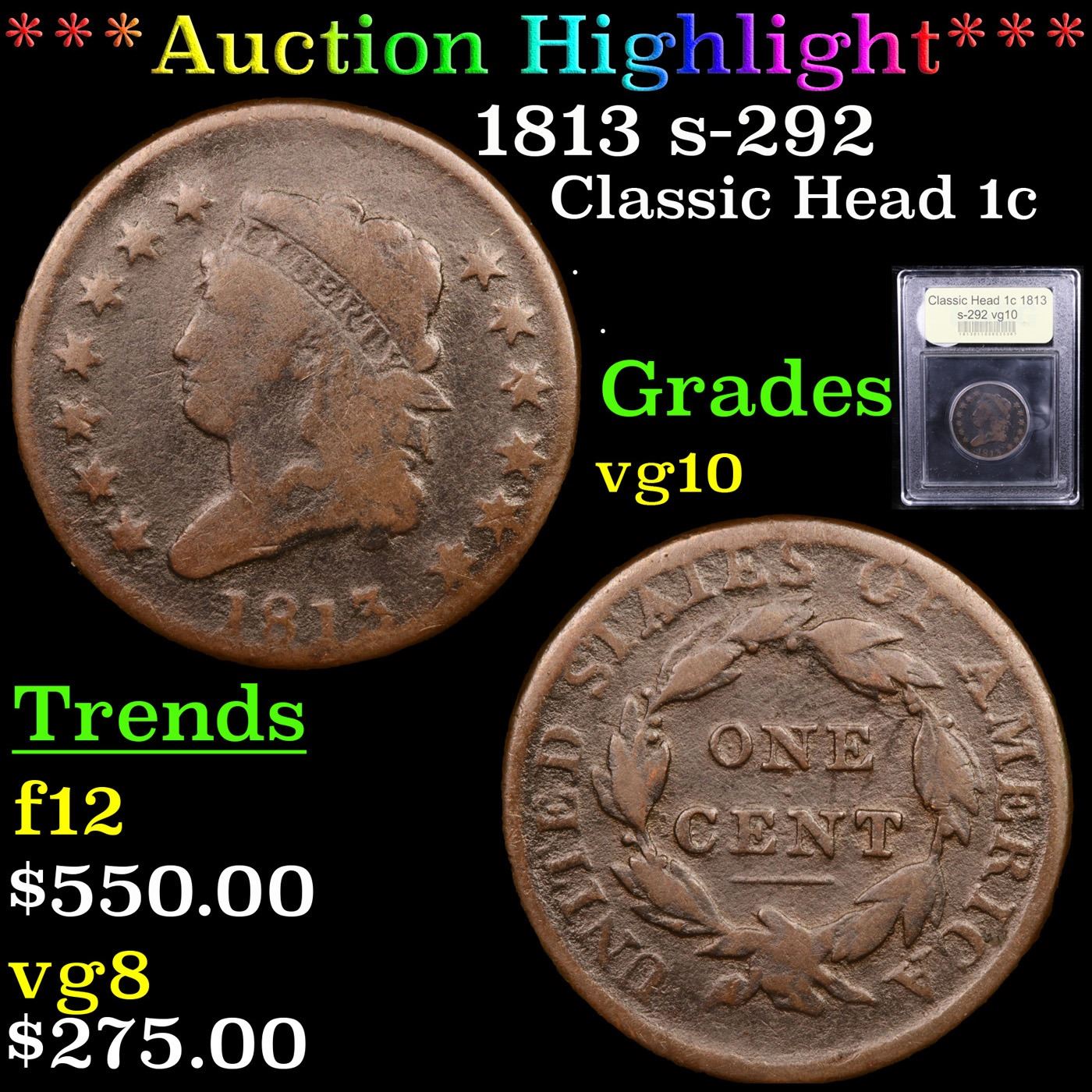 ***Auction Highlight*** 1813 s-292 Classic Head Large Cent 1c Graded vg+ By USCG. A Corey's Pick, Bid to Win Coin