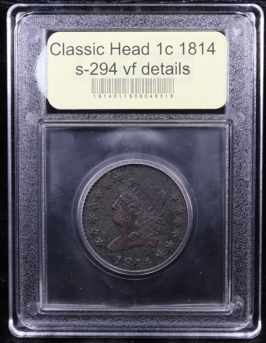 ***Auction Highlight*** 1814 s-294 Classic Head Large Cent 1c Graded vf details By USCG.