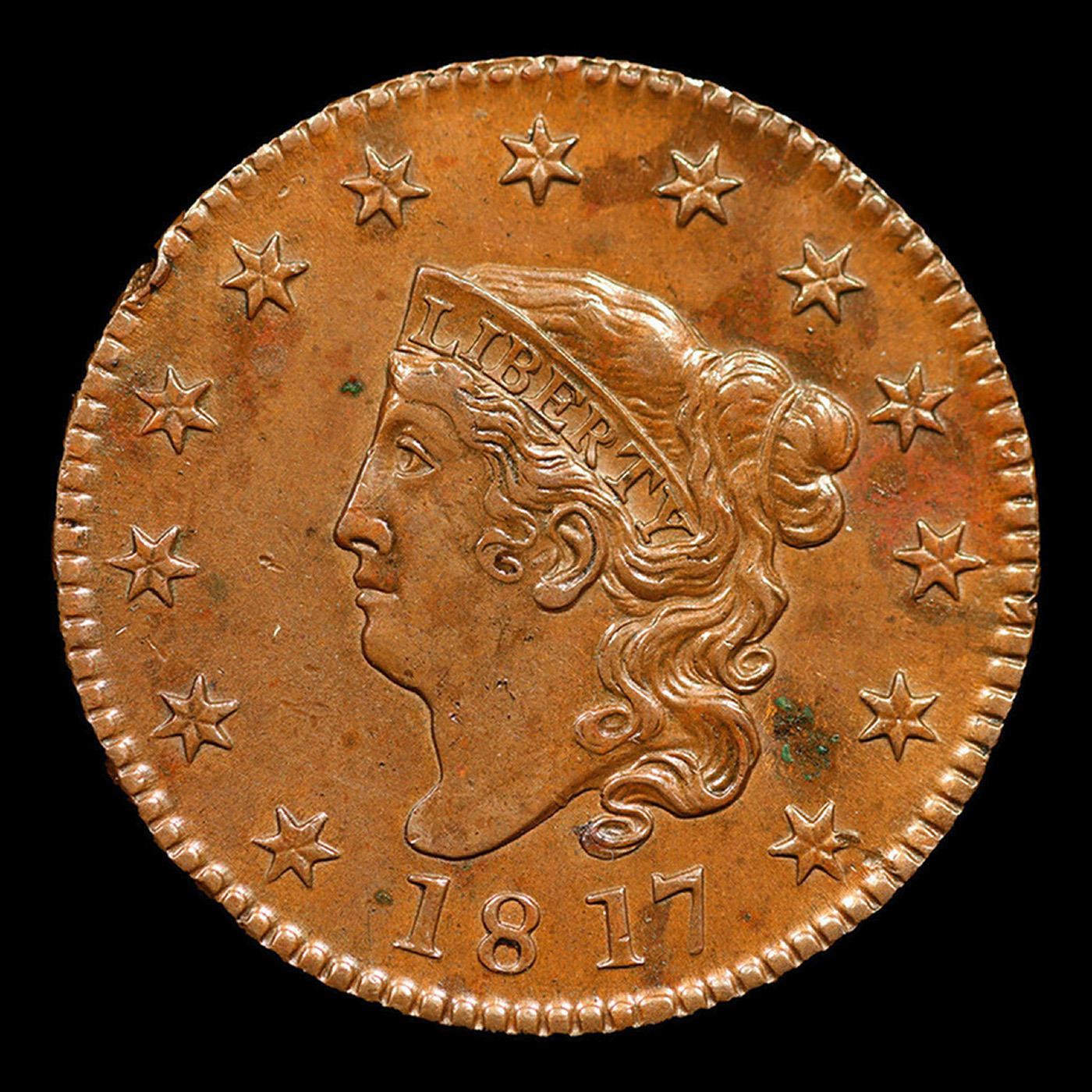 ***Auction Highlight*** 1817 13 Stars Coronet Head Large Cent 1c Graded au58+ By SEGS (fc)