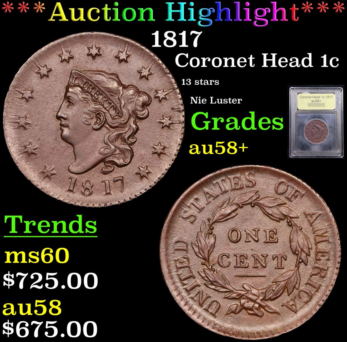 ***Auction Highlight*** 1817 Coronet Head Large Cent 1c Graded Choice AU/BU Slider+ By USCG. A Corey's Pick, Bid to Win Coin