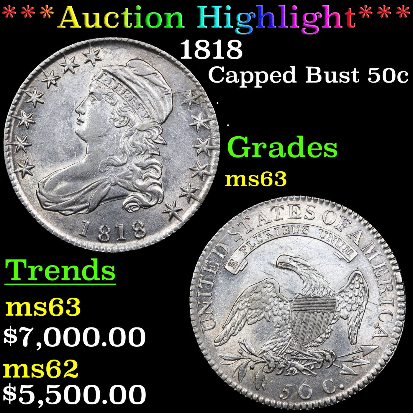 ***Auction Highlight*** 1818 Capped Bust Half Dollar 50c Graded ms63 BY SEGS. A Corey's Pick, Bid to Win Coin