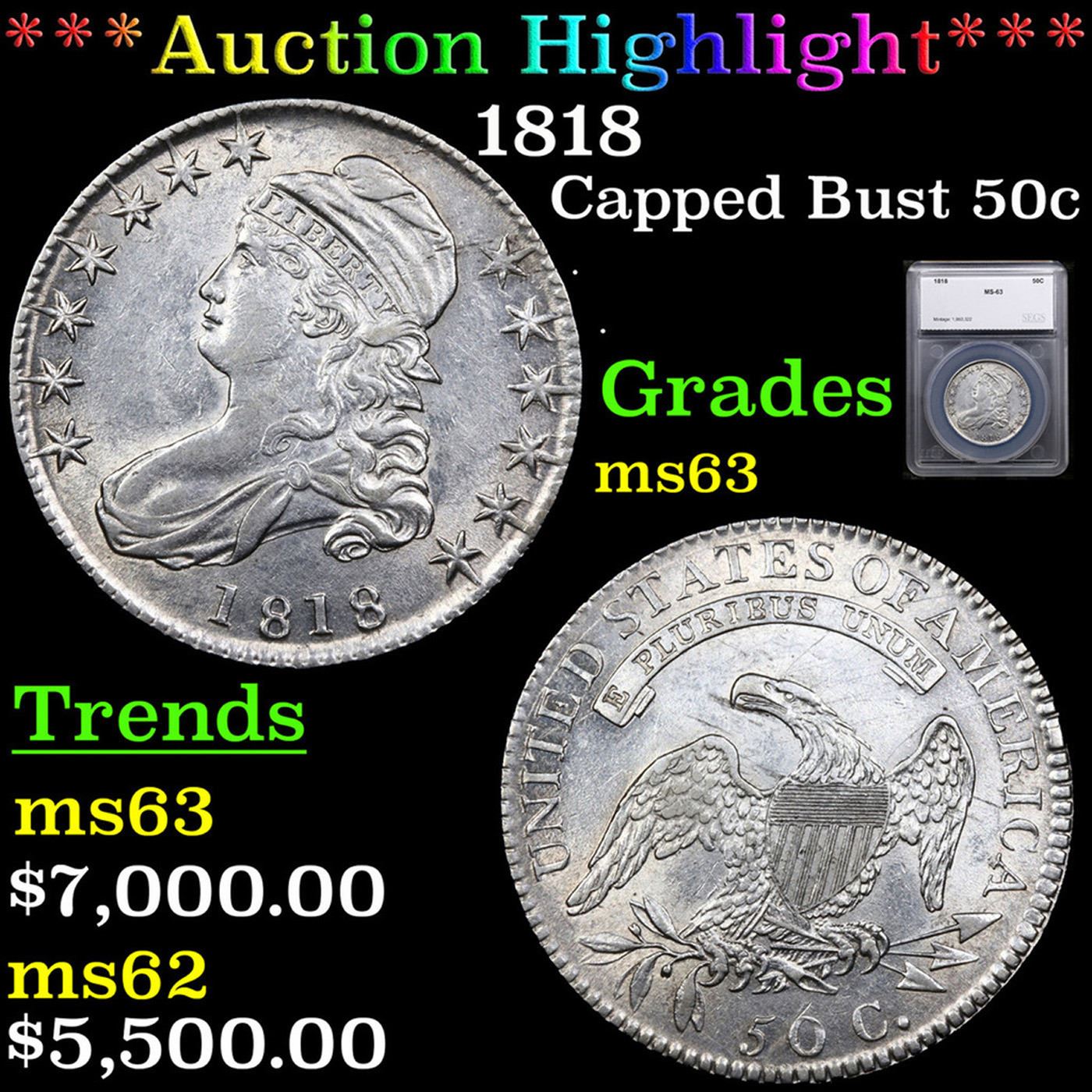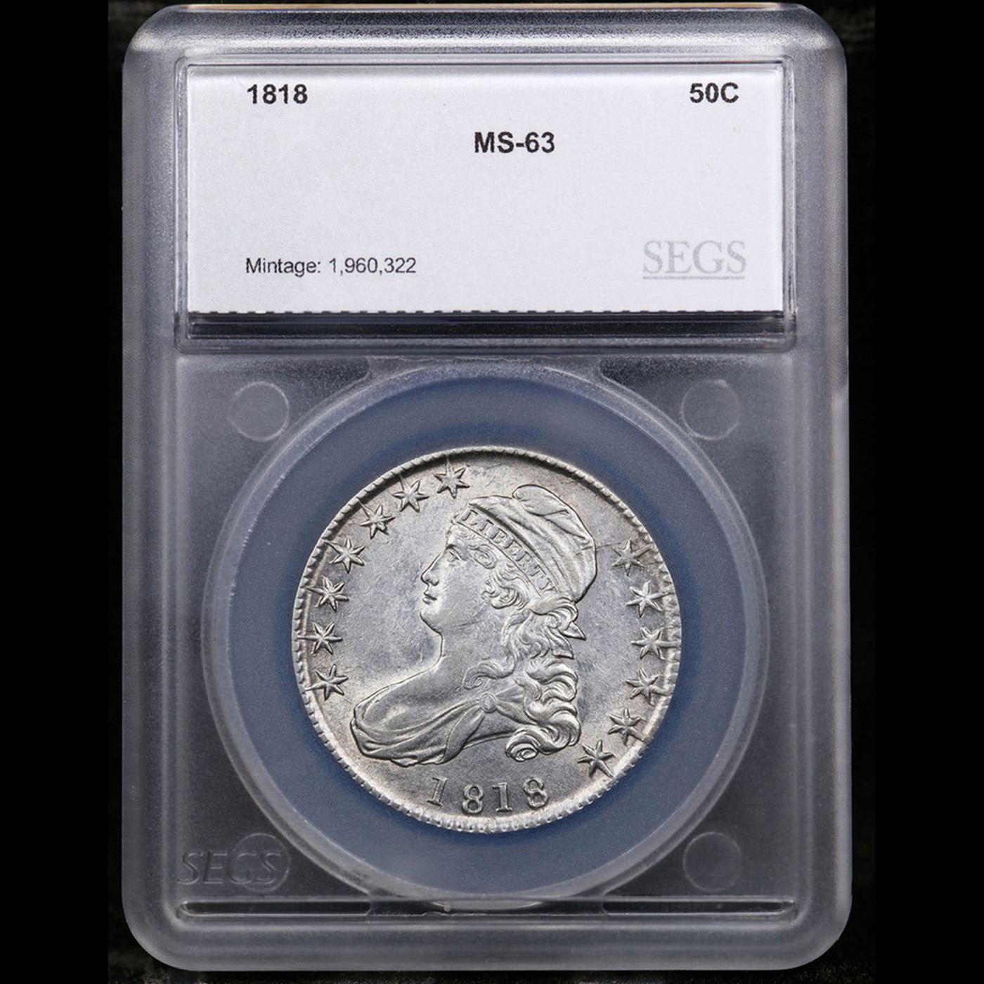 ***Auction Highlight*** 1818 Capped Bust Half Dollar 50c Graded ms63 BY SEGS. A Key Date's Pick, Bid to Win Coin