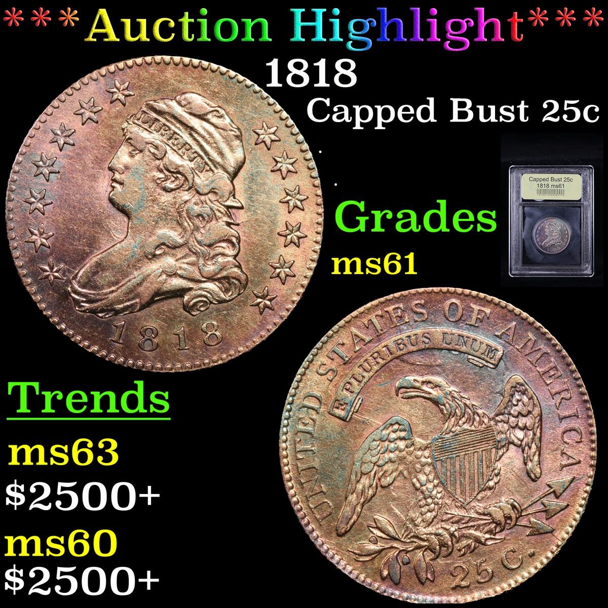 ***Auction Highlight*** 1818 . . Capped Bust Quarter 25c Graded Choice AU By USCG. A Corey's Pick, Bid to Win, Don't let it get Away, you might not find its equal Coin