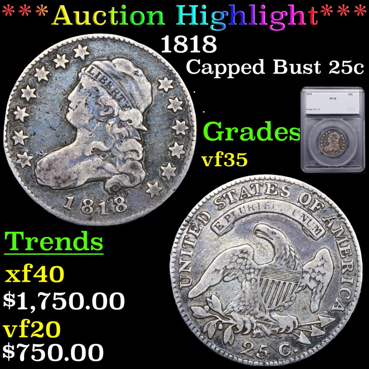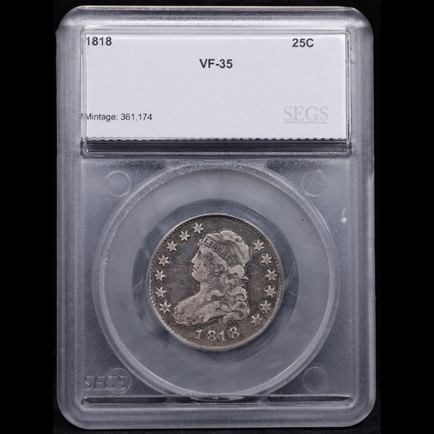 ***Auction Highlight*** 1818 Capped Bust Quarter 25c Graded vf35 BY SEGS. A Key Date's Pick, Bid to Win Coin