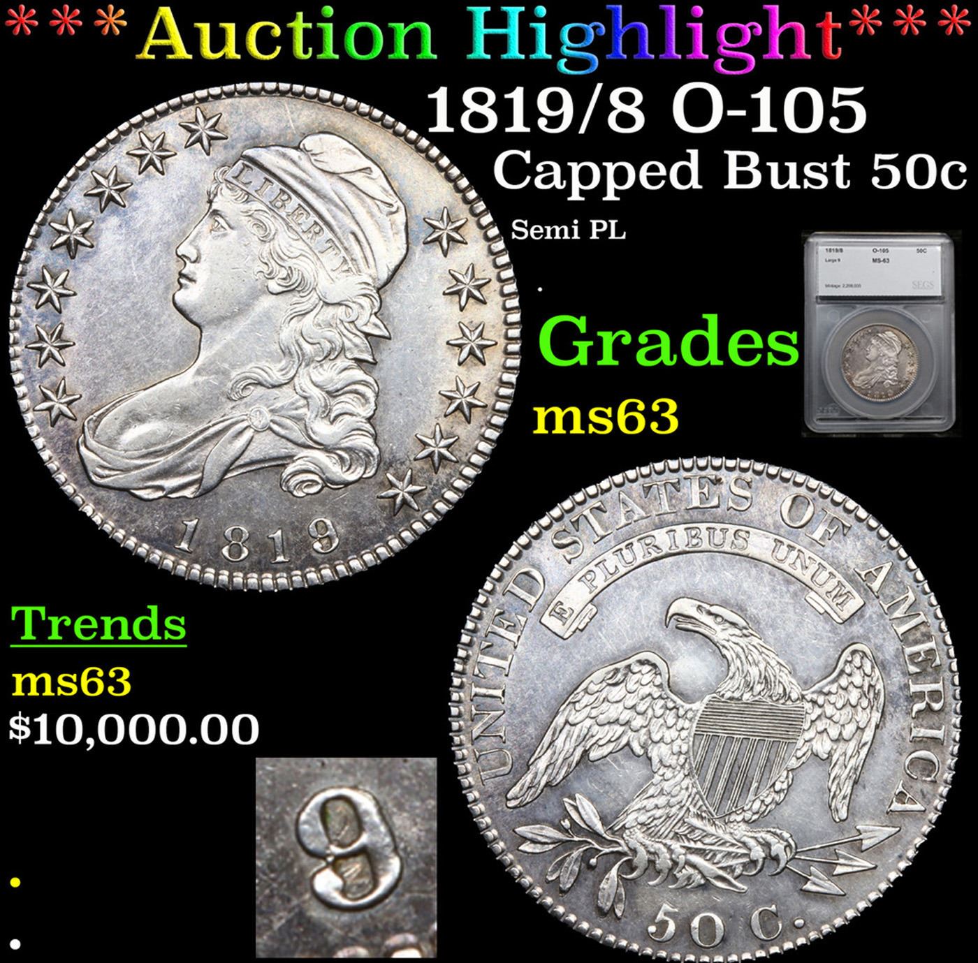 ***Auction Highlight*** 1819 Capped Bust Half Dollar 50c Graded ms63 By SEGS. A Corey's Pick, Bid to Win, Don't let it get Away Coin