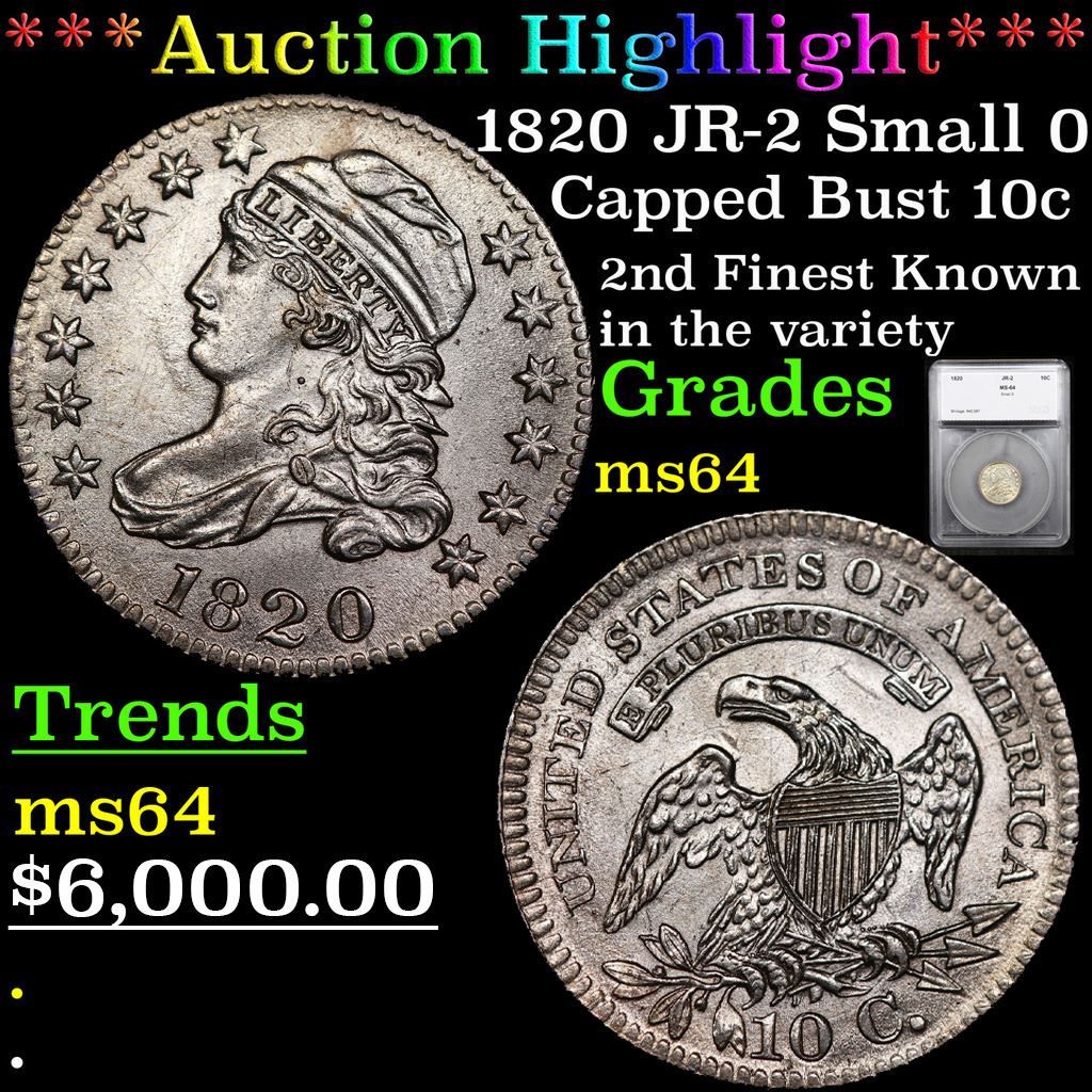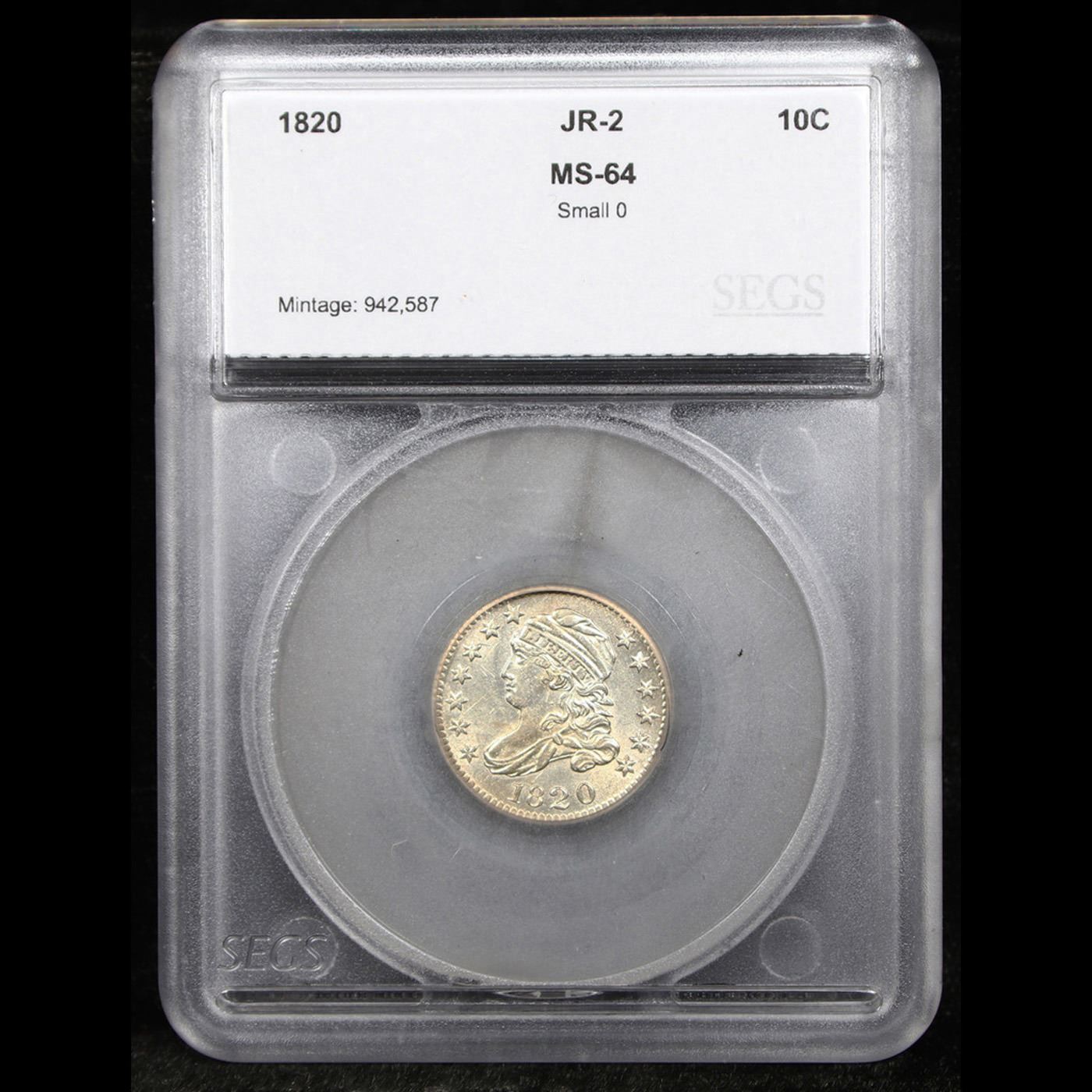 ***Auction Highlight*** 1820 JR-2 Small 0 Capped Bust Dime 10c Graded ms64 By SEGS.