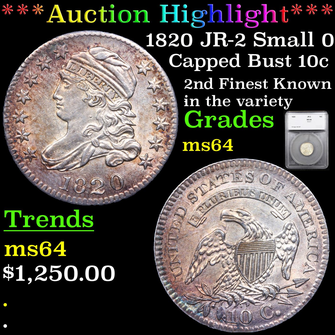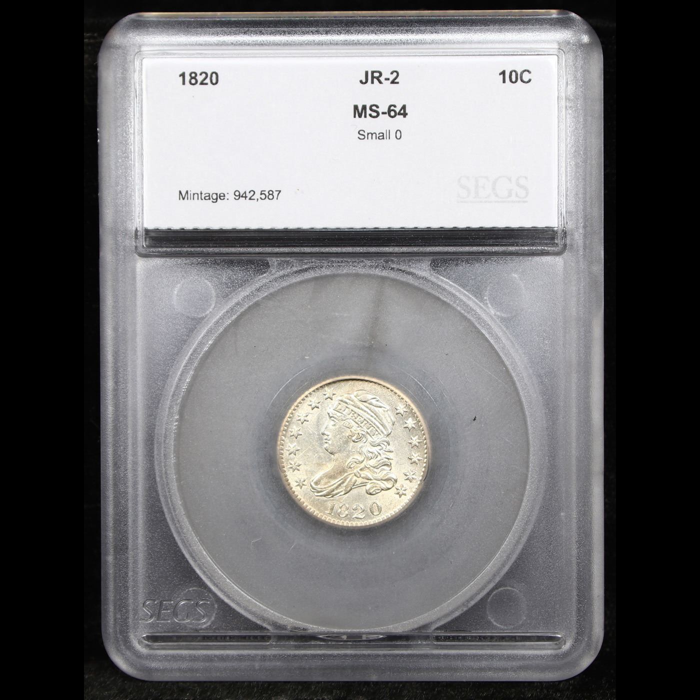 ***Auction Highlight*** 1820 JR-2 Small 0 Capped Bust Dime 10c Graded ms64 By SEGS.