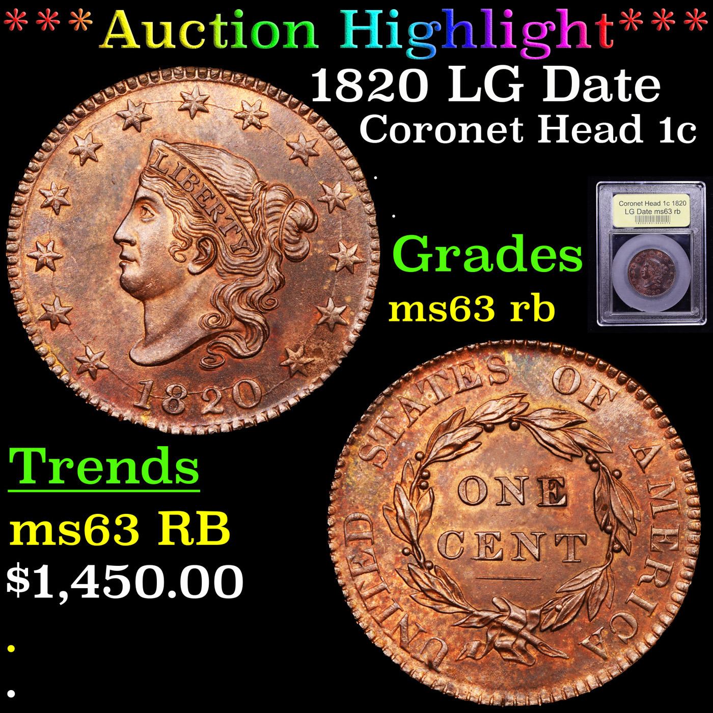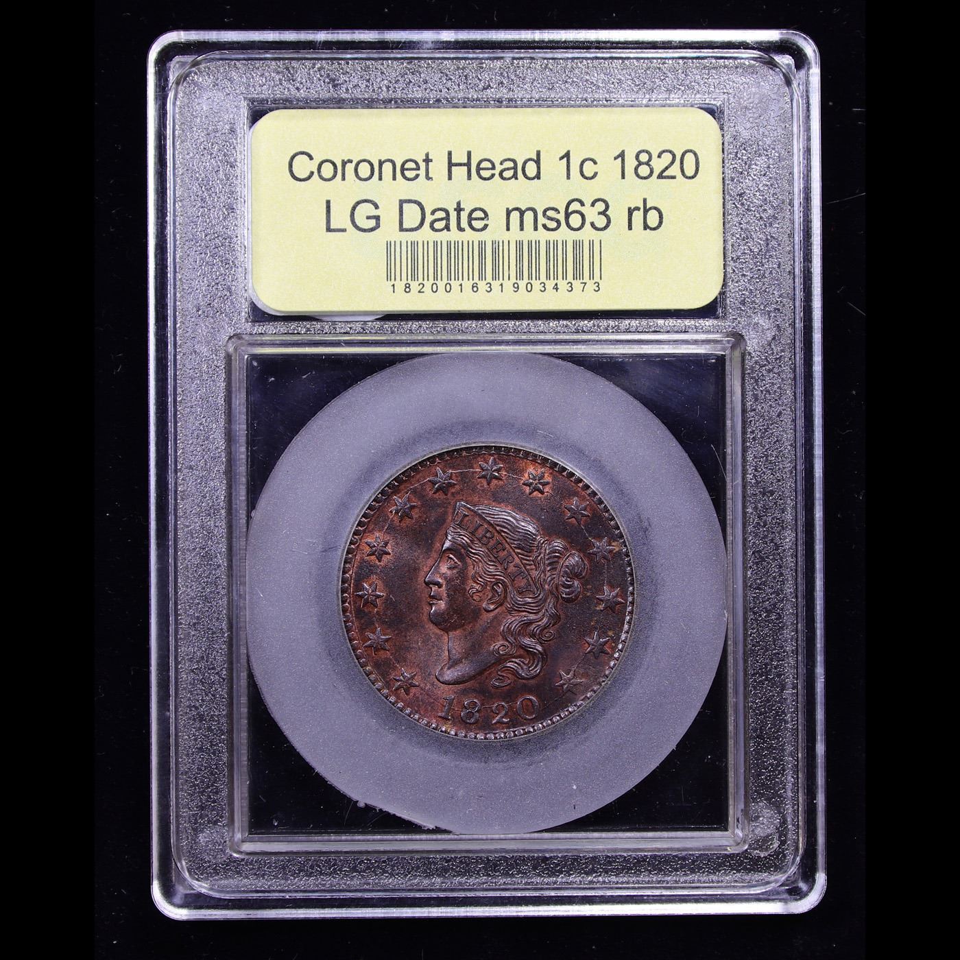 ***Auction Highlight*** 1820 LG Date Coronet Head Large Cent 1c Graded Select Unc RB By USCG (fc)