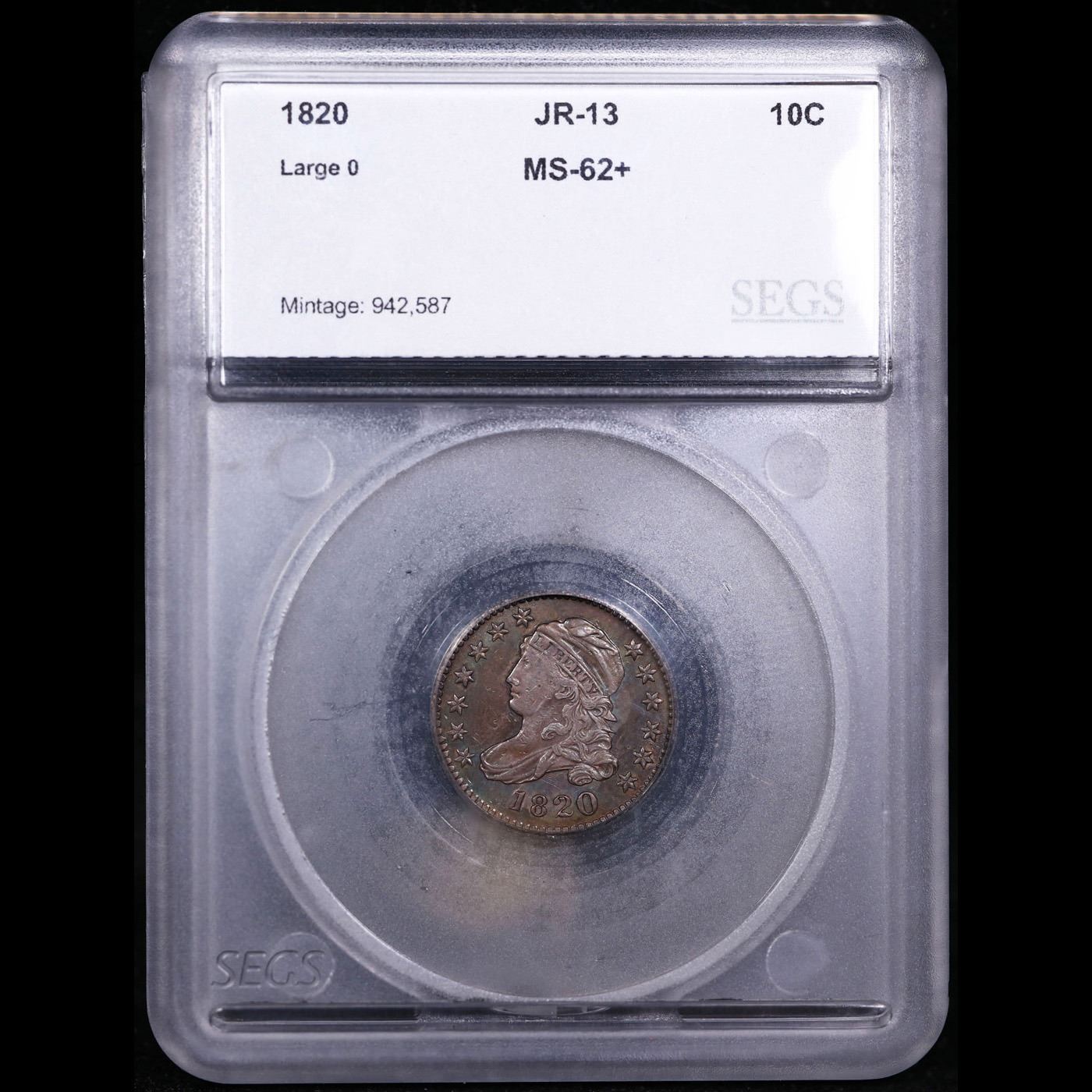***Auction Highlight*** 1820 Large 0 JR-13 R3 Capped Bust Dime 10c Graded ms62+ BY SEGS. A Key Date's Pick, Bid to Win Coin