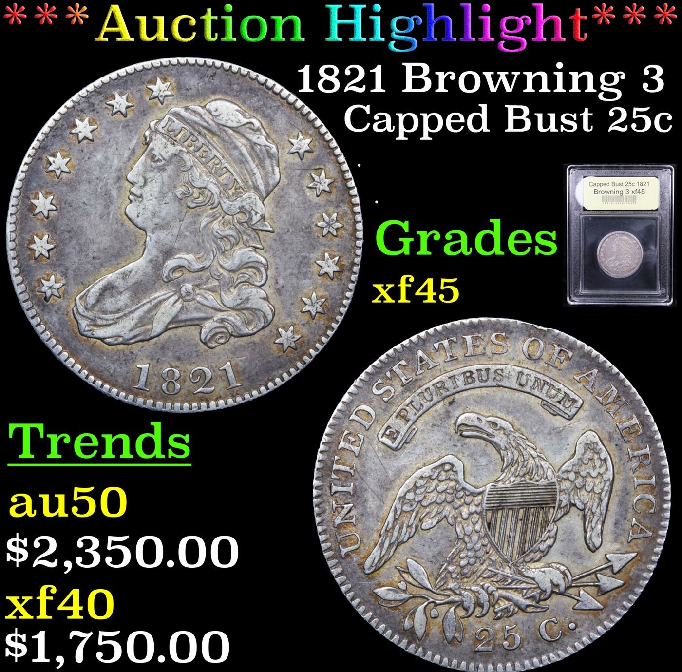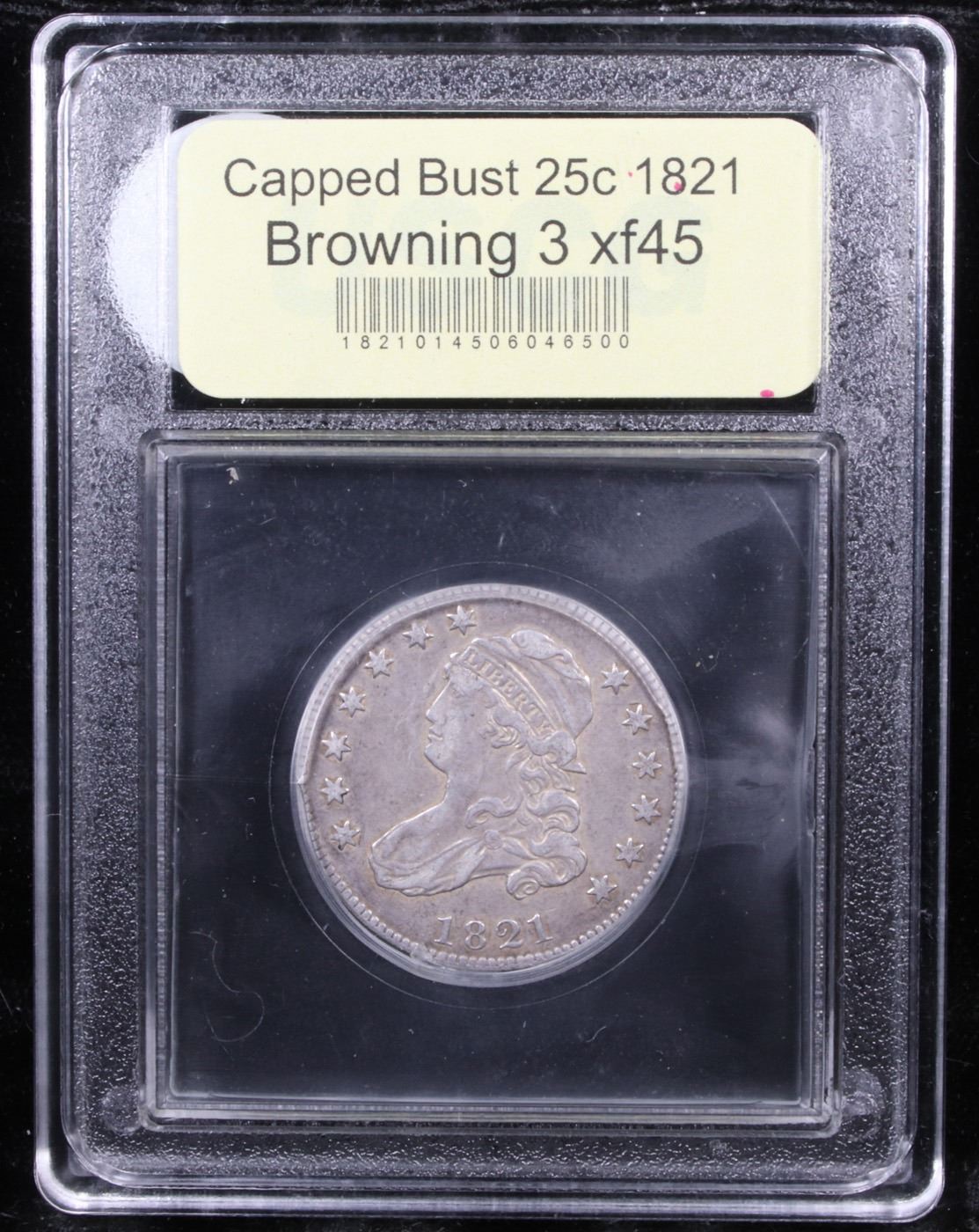 ***Auction Highlight*** 1821 Browning 3 Capped Bust Quarter 25c Graded xf+ By USCG (fc)