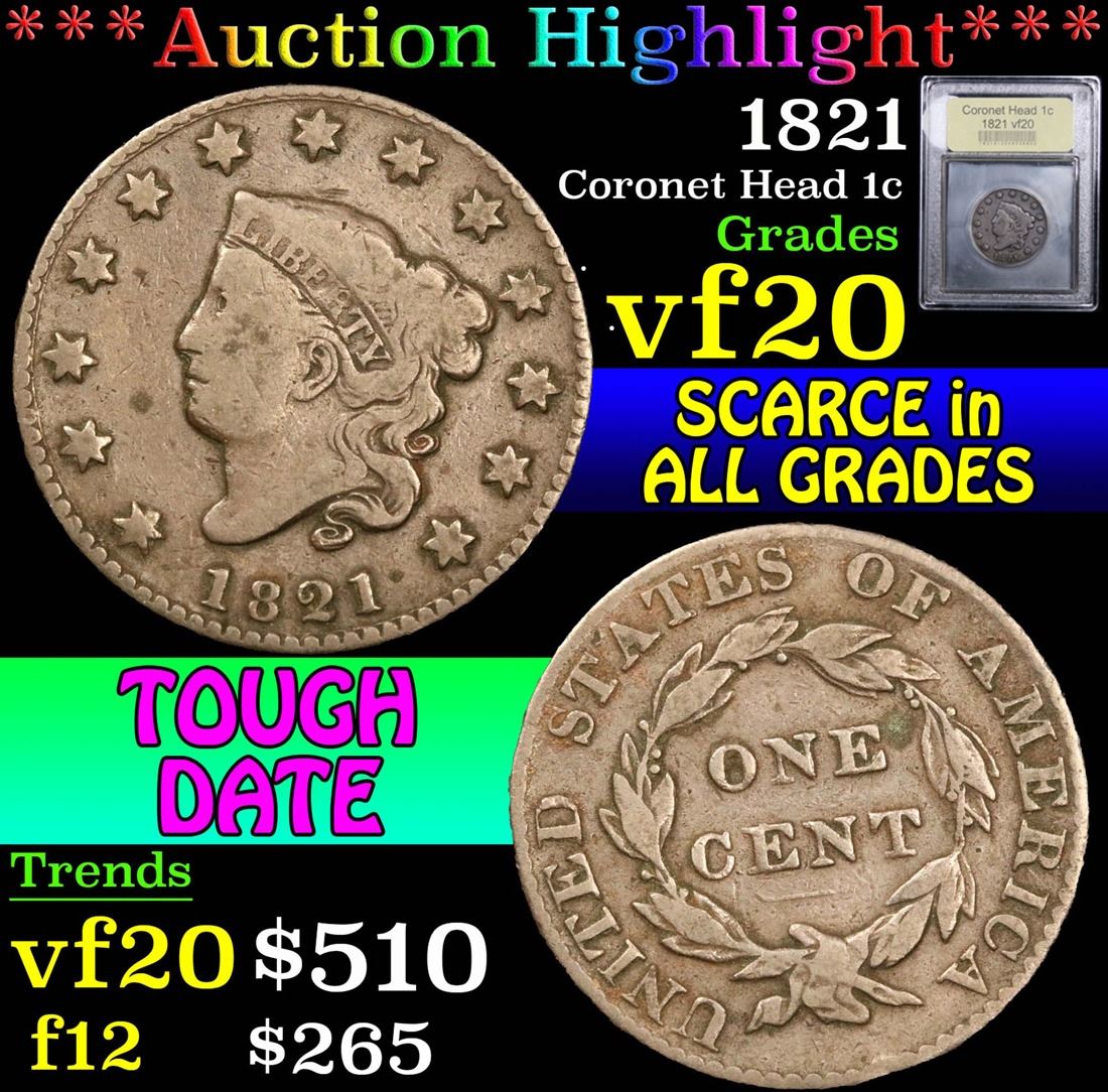 ***Auction Highlight*** 1821 . . Coronet Head Large Cent 1c Graded vf, very fine By USCG.