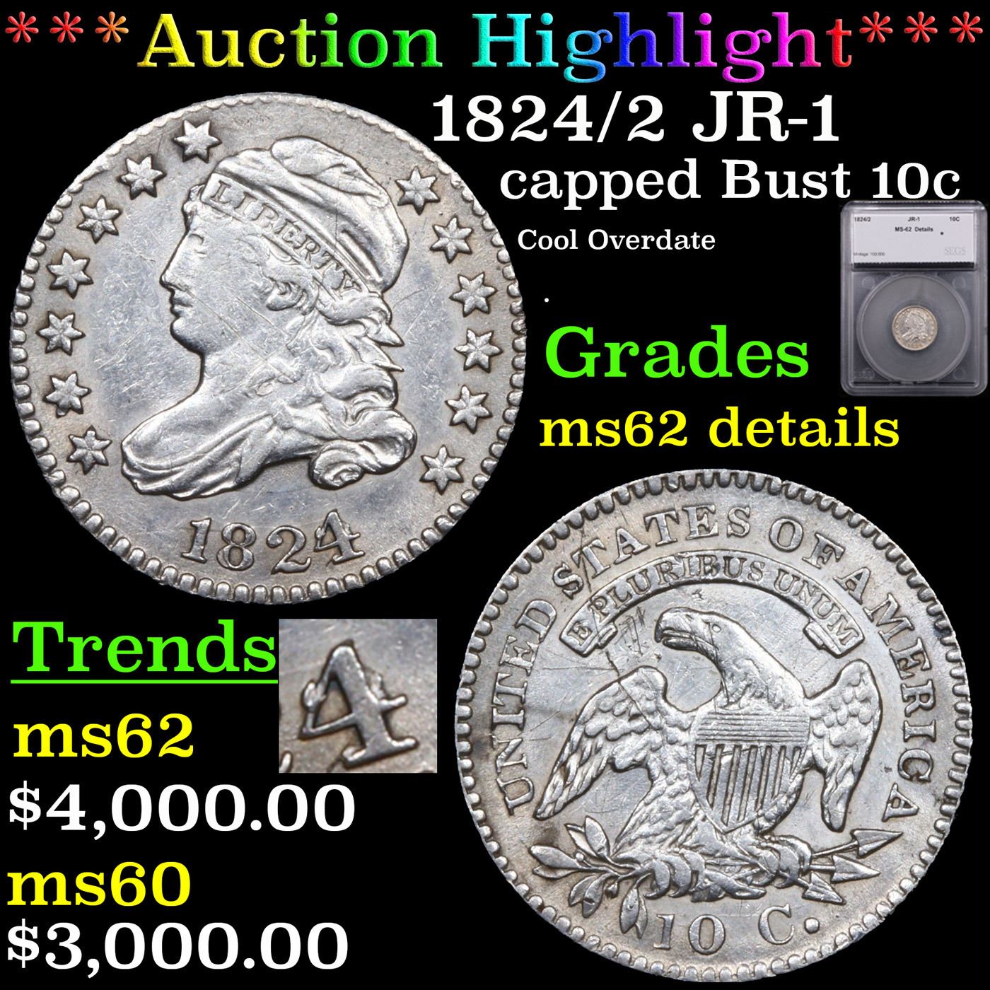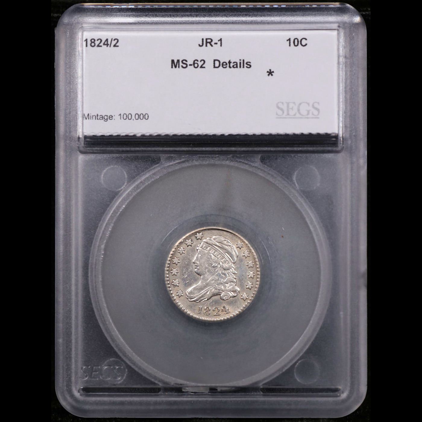 ***Auction Highlight*** 1824/2 JR-1 Capped Bust Dime 10c Graded ms62 details By SEGS (fc)