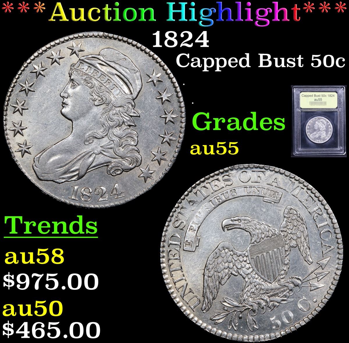 ***Auction Highlight*** 1824 Capped Bust Half Dollar 50c Graded Choice AU By USCG. A Corey's Pick, Bid to Win Coin