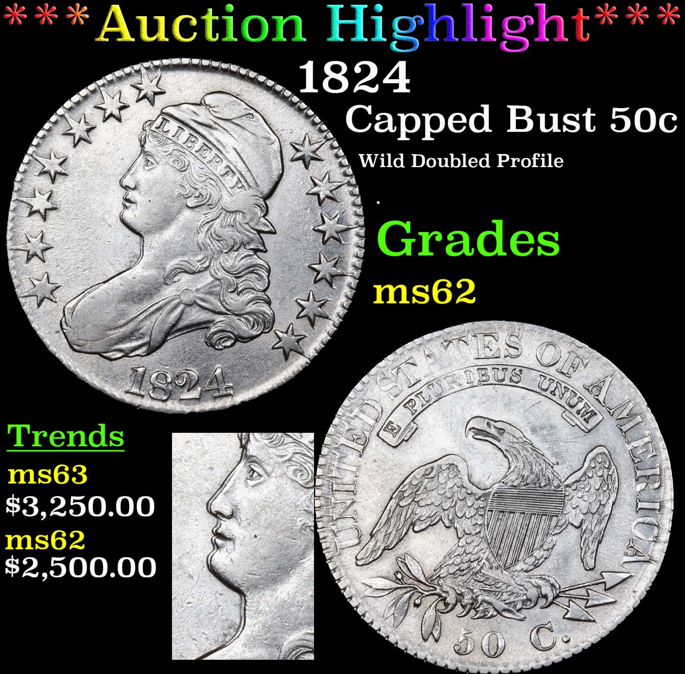 ***Auction Highlight*** 1824 Capped Bust Half Dollar 50c Grades Select Unc.