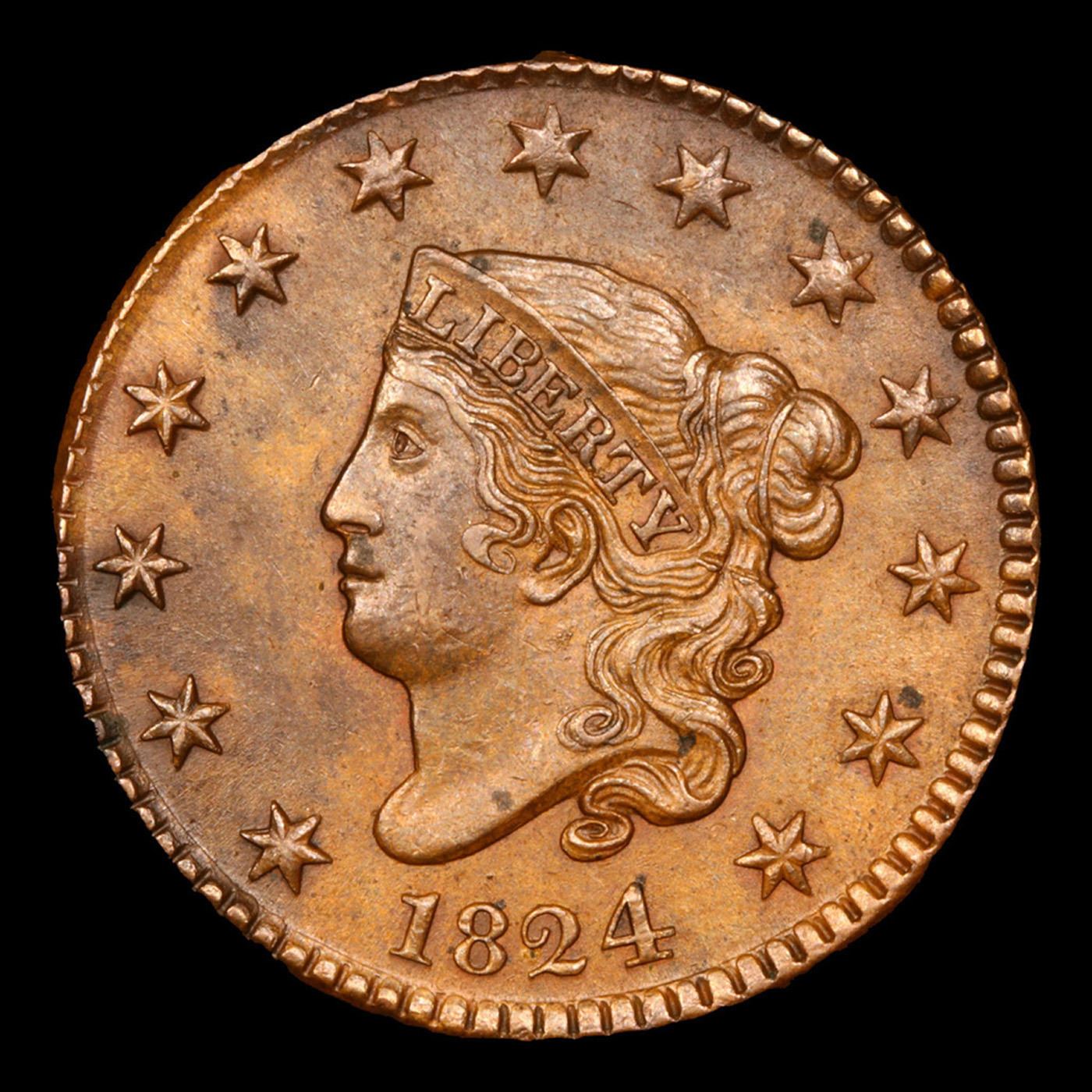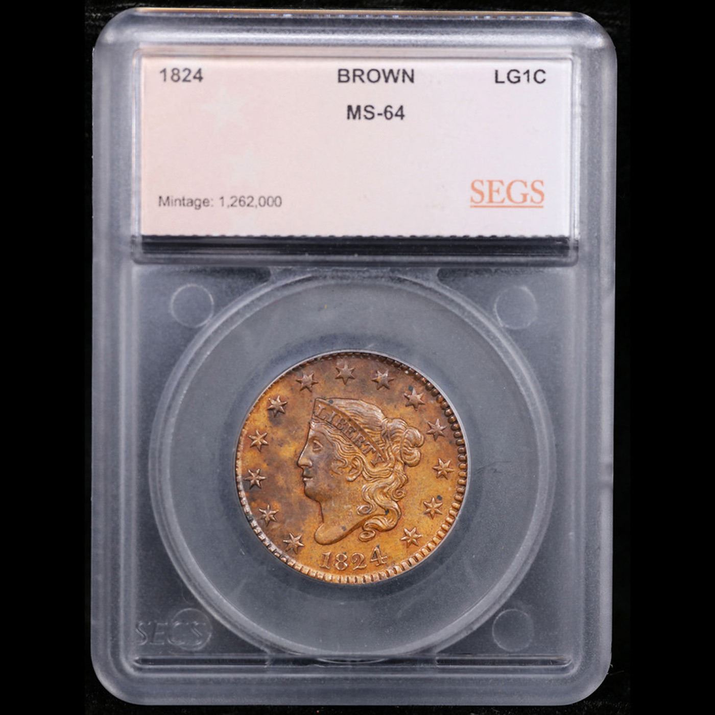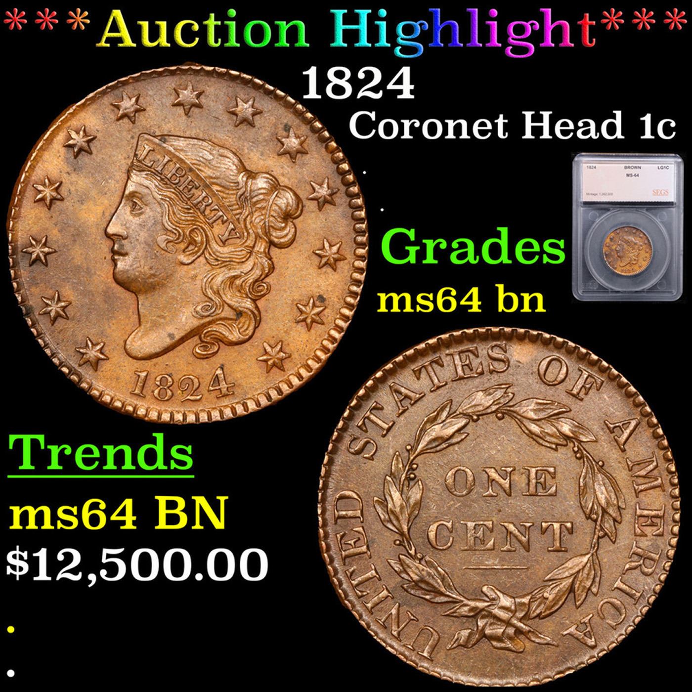 ***Auction Highlight*** 1824 Coronet Head Large Cent 1c Graded ms64 bn By SEGS. A Corey's Pick, Bid to Win, Don't let it get Away, you might not find its equal Coin