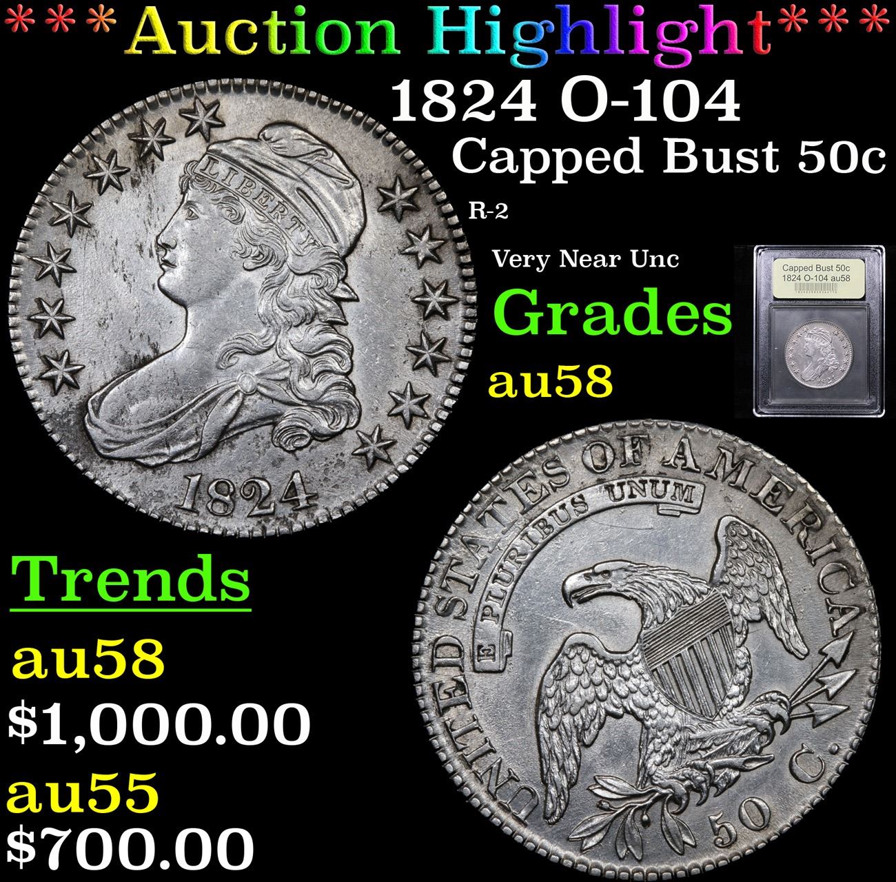 ***Auction Highlight*** 1824 O-104 R-2 Very Near Unc Capped Bust Half Dollar 50c Graded Choice AU/BU Slider By USCG. A Corey's Pick, Bid to Win Coin