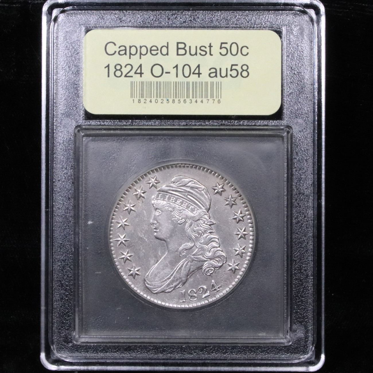 ***Auction Highlight*** 1824 O-104 Capped Bust Half Dollar 50c Graded Choice AU/BU Slider By USCG (f