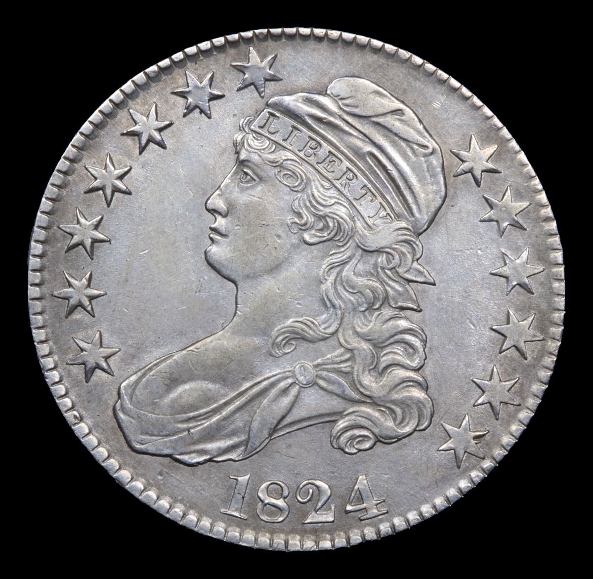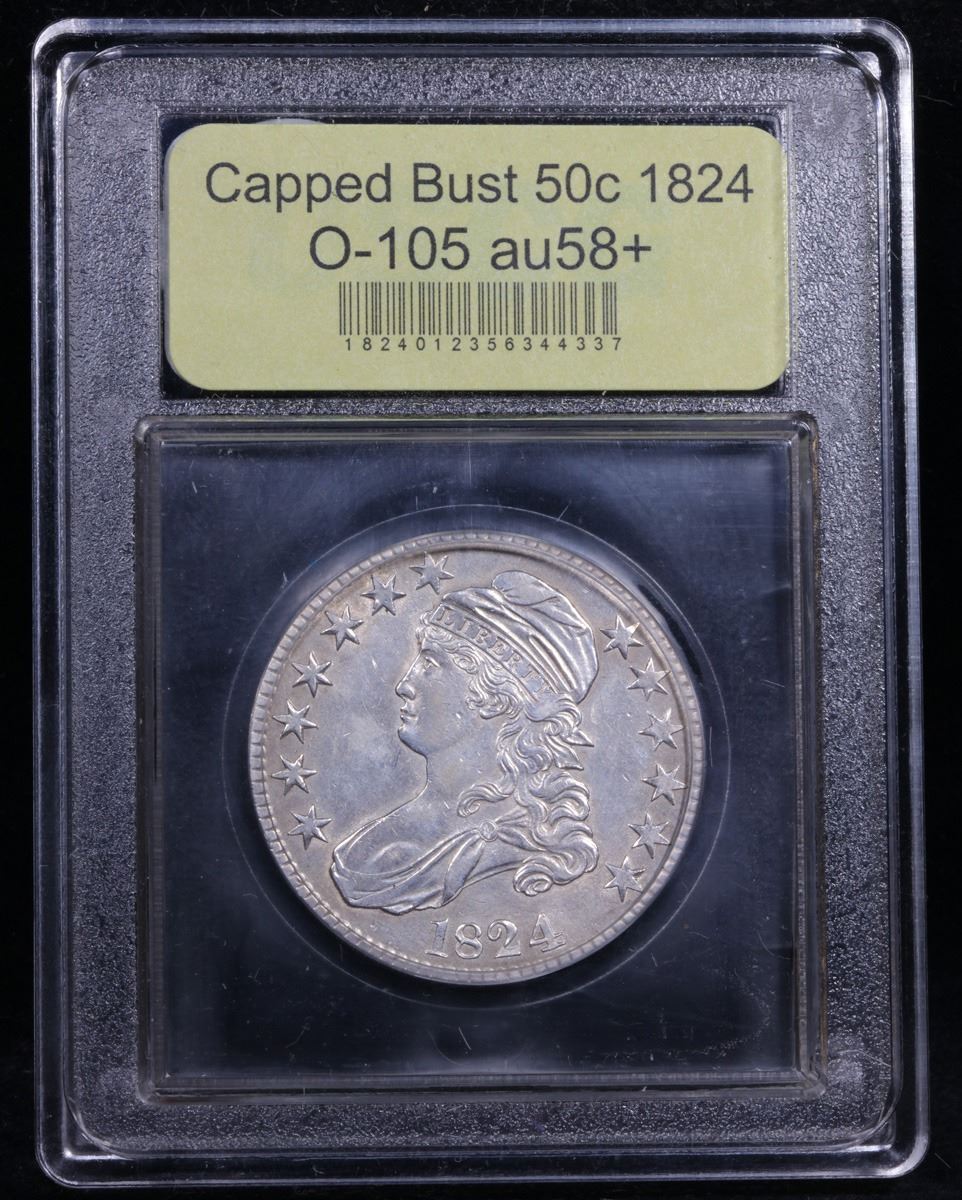 ***Auction Highlight*** 1824 O-105 R2 Capped Bust Half Dollar 50c Graded Choice AU/BU Slider+ By USCG. A Corey's Pick, Bid to Win Coin