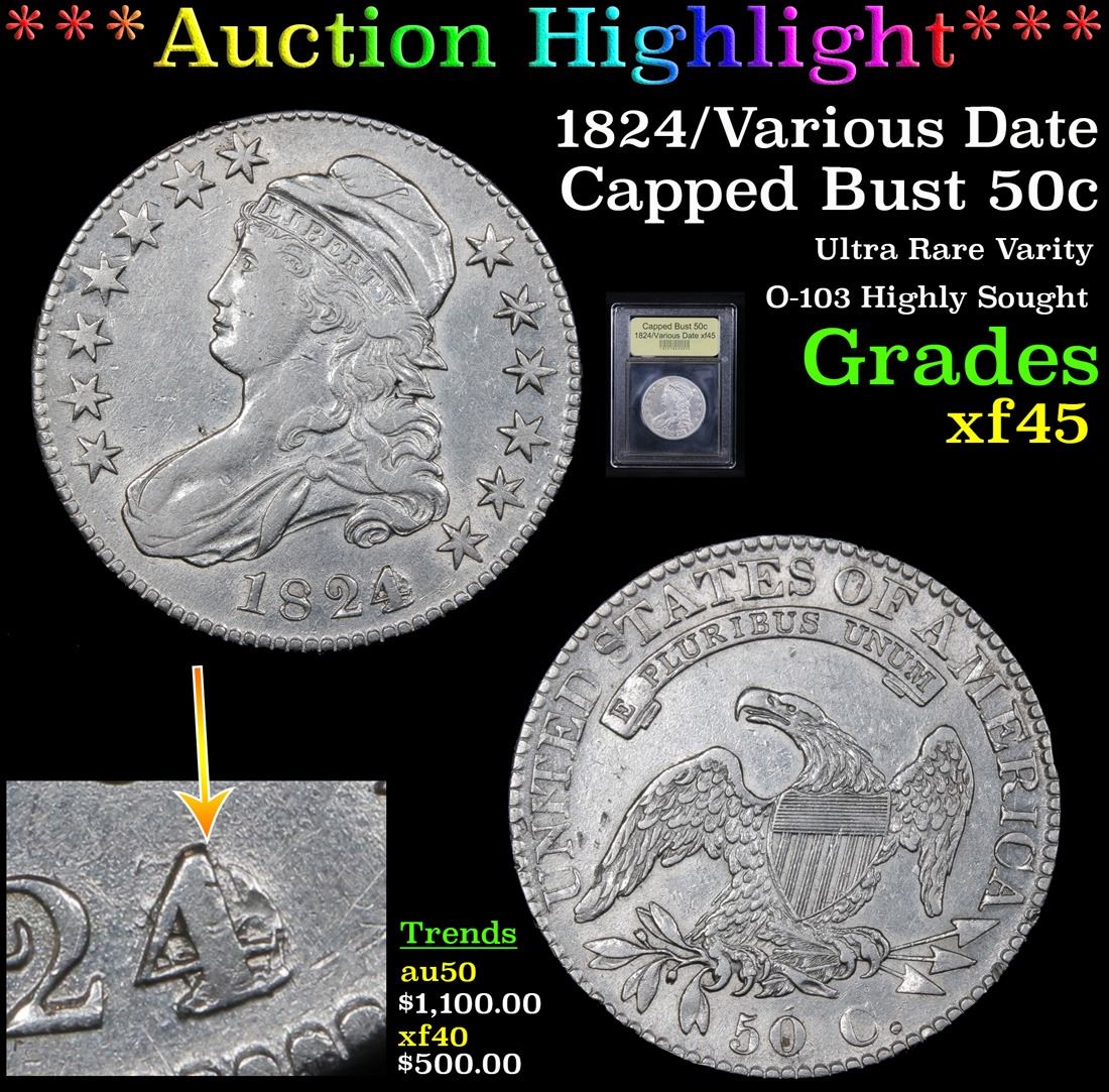 ***Auction Highlight*** 1824/Various Date Ultra Rare Varity O-103 Highly Sought Capped Bust Half Dollar 50c Graded xf+ By USCG. A Corey's Pick, Bid to Win Coin