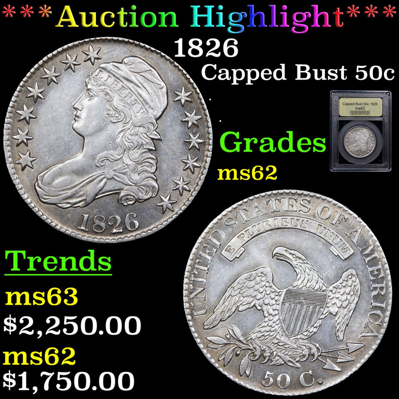 ***Auction Highlight*** 1826 Capped Bust Half Dollar 50c Graded Select Unc BY USCG (fc)