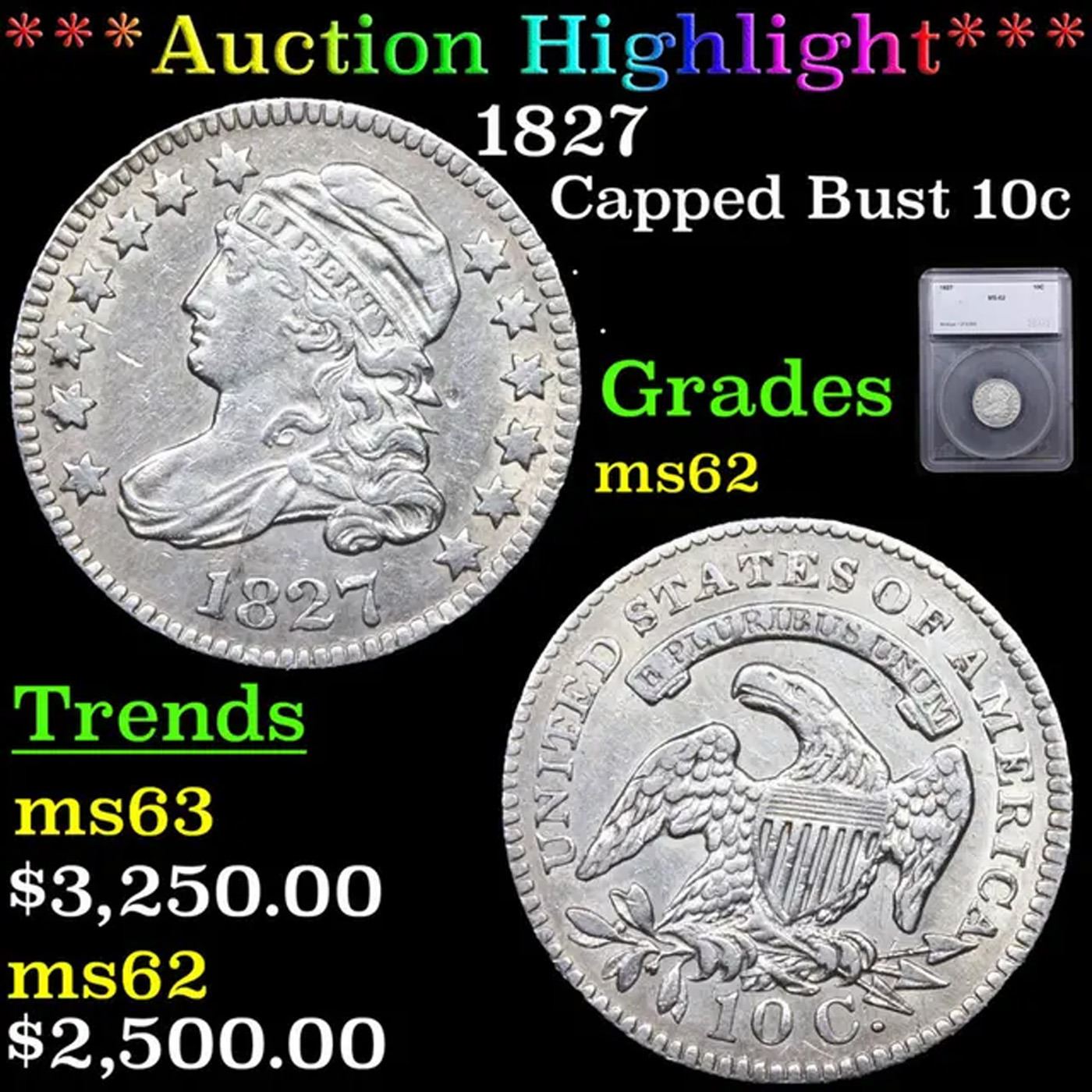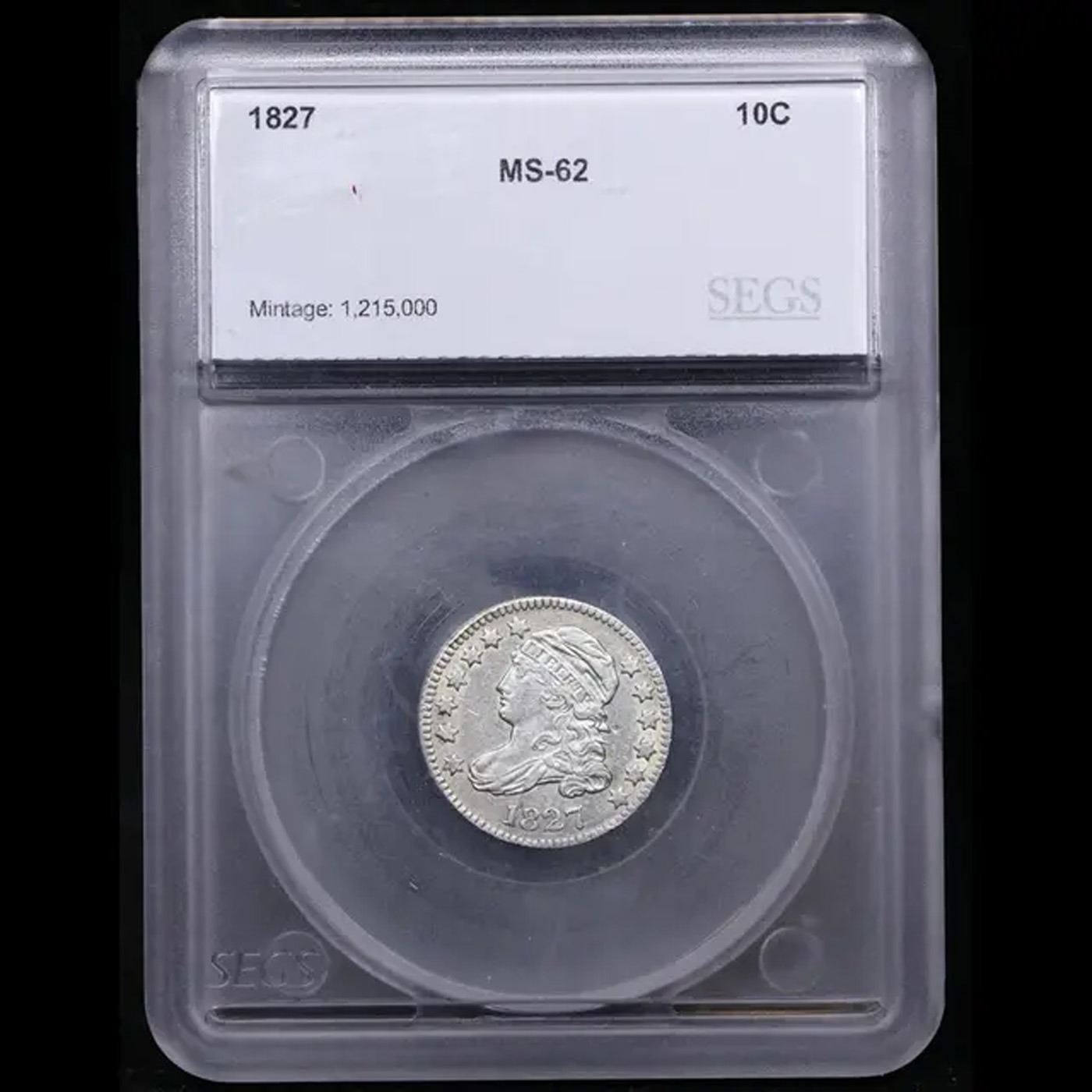 ***Auction Highlight*** 1827 Capped Bust Dime 10c Graded ms62 BY SEGS.