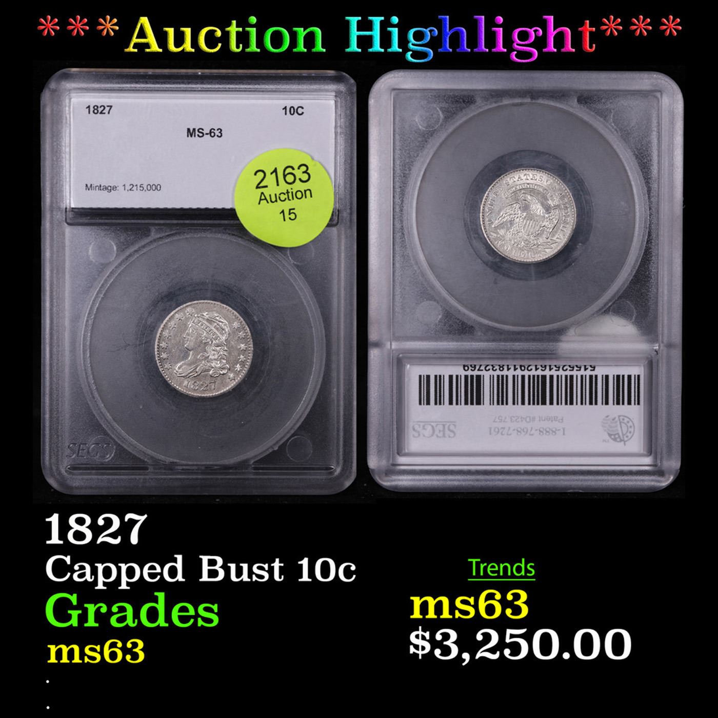 ***Auction Highlight*** 1827 Capped Bust Dime 10c Graded ms63 BY SEGS. A Corey's Pick, Bid to Win, Don't let it get Away Coin