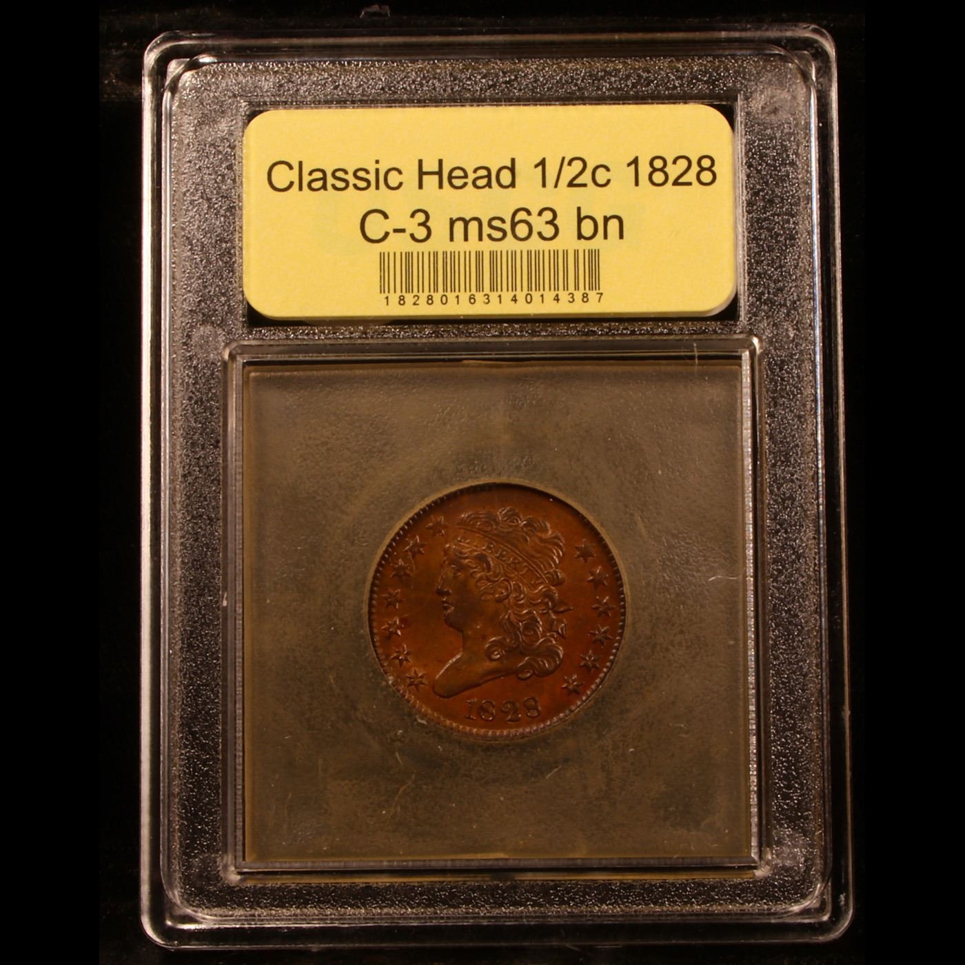 ***Auction Highlight*** 1828 C-3 Classic Head half cent 1/2c Graded Select Unc BN By USCG.
