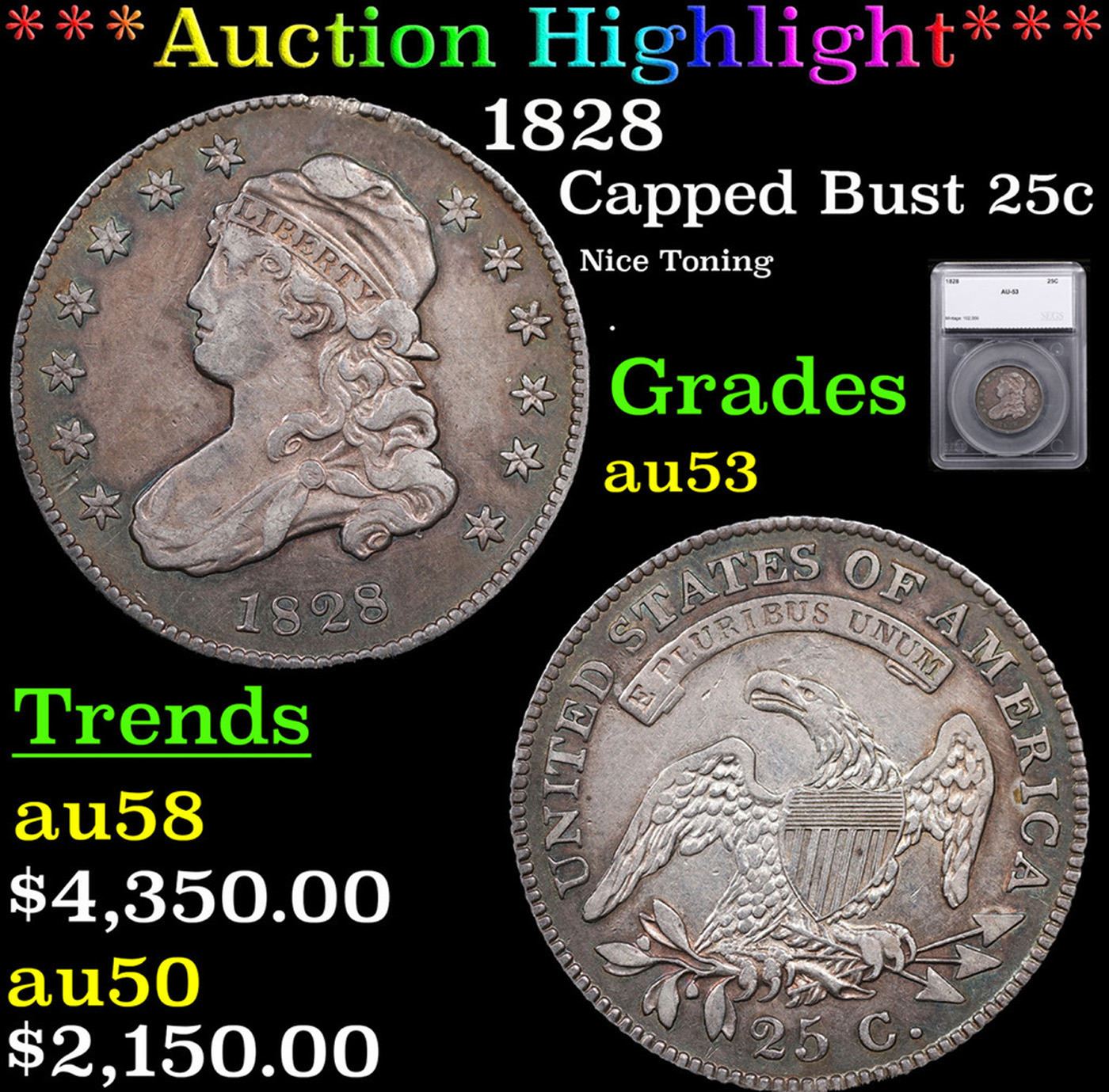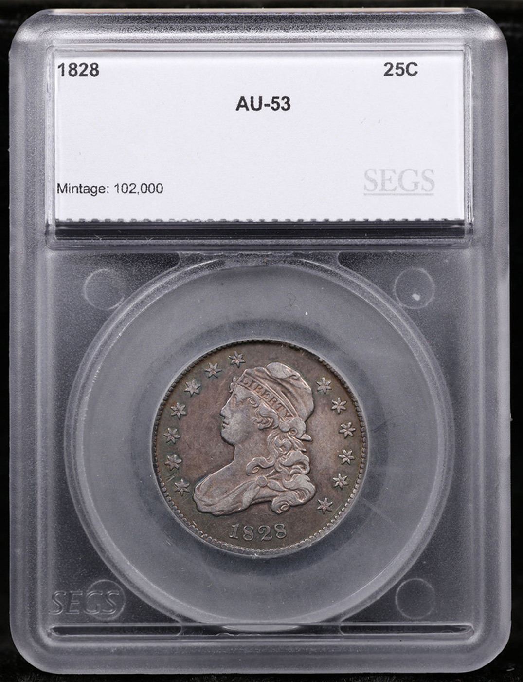 ***Auction Highlight*** 1828 Capped Bust Quarter 25c Graded au53 By SEGS. A Corey's Pick, Bid to Win Coin